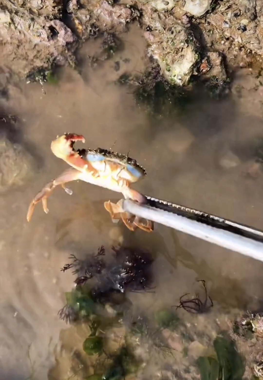 抓螃蟹铁夹子必须用!花盖蟹夹人非常疼,爪子掉了都会松的!千万别用手!切记切记!