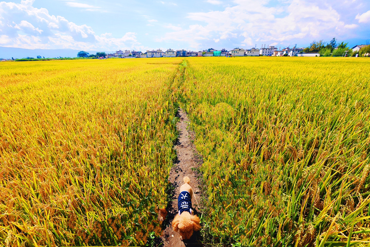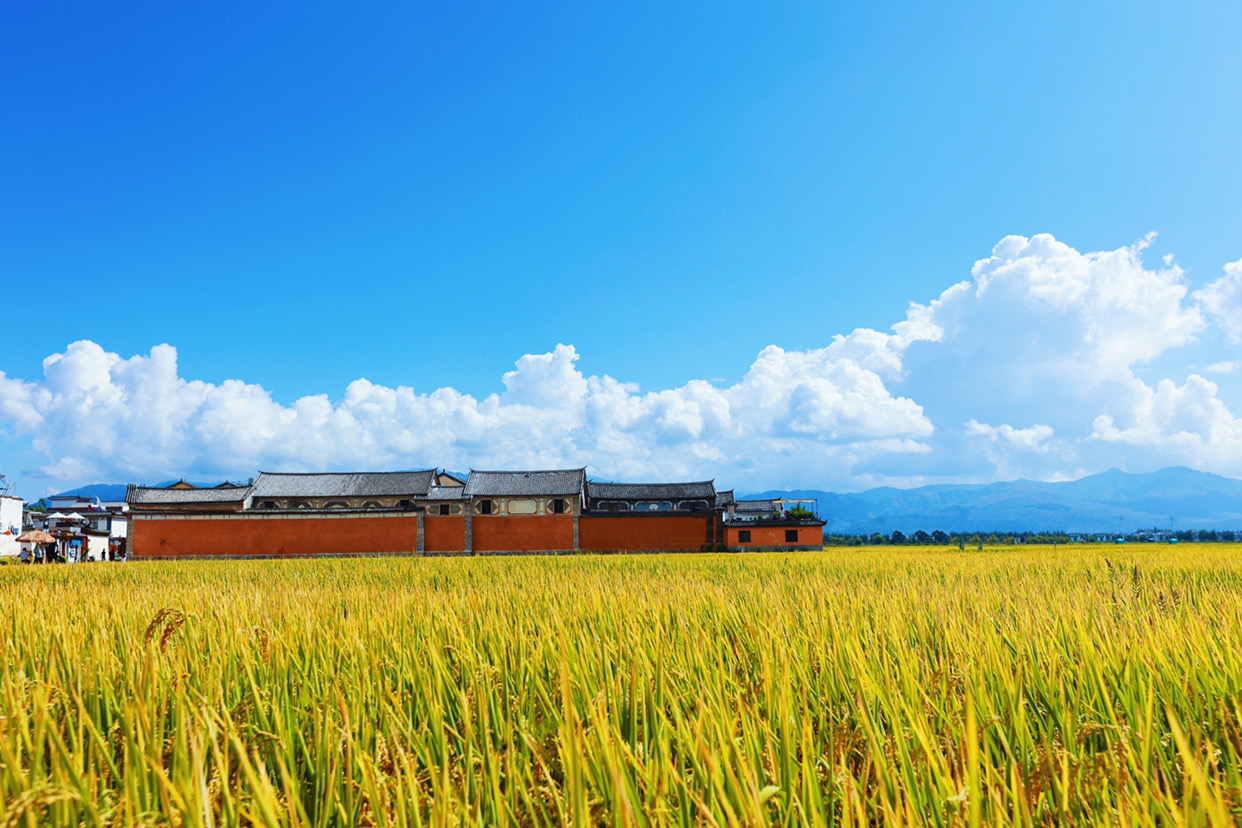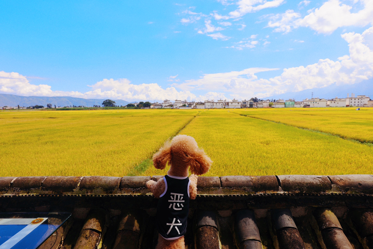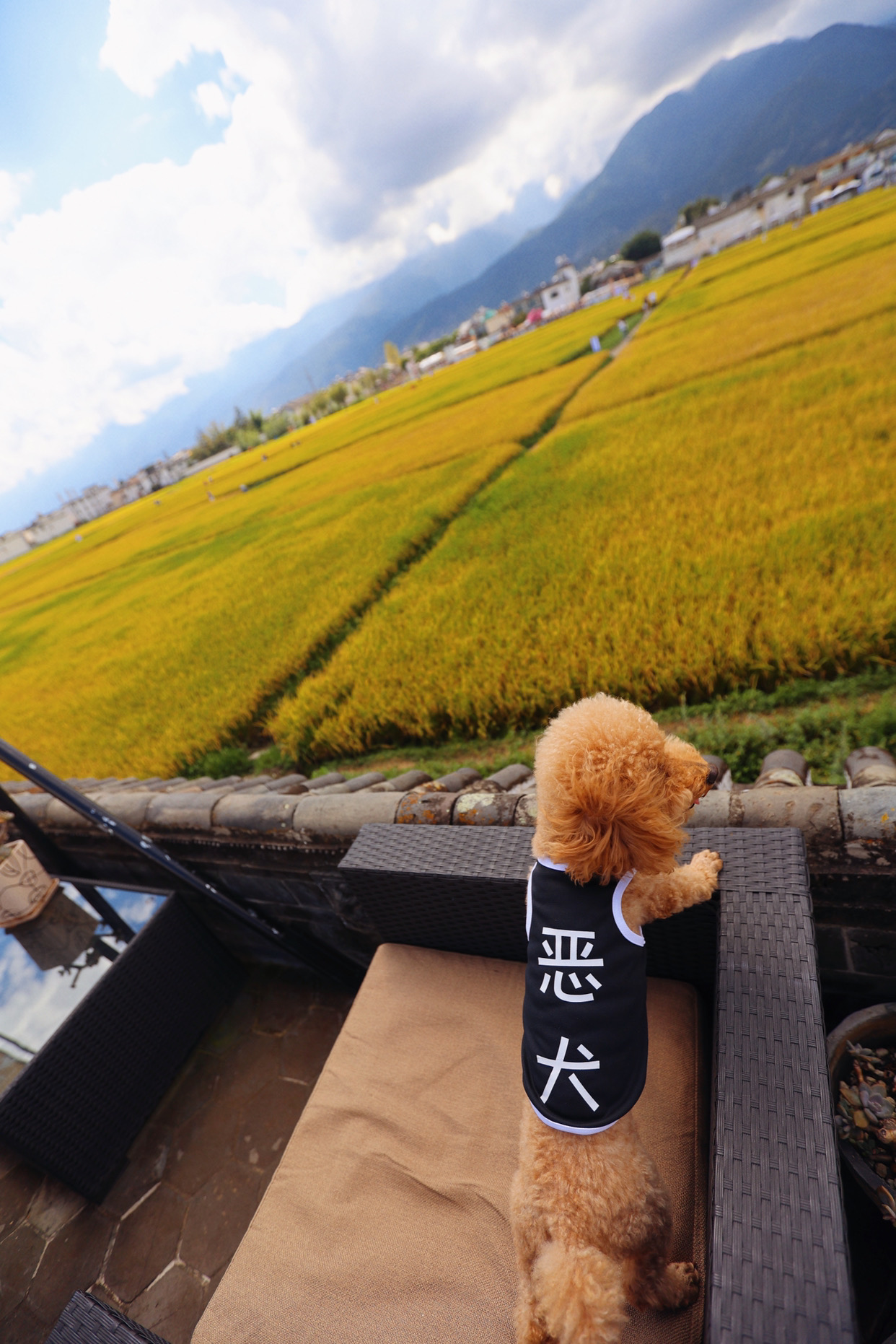 高升起,毫不吝啬地把阳光倾泻到大地上,倾泻到村落里的房屋、树木、围栏上,把村子染成了万山红遍的醉人秋色。