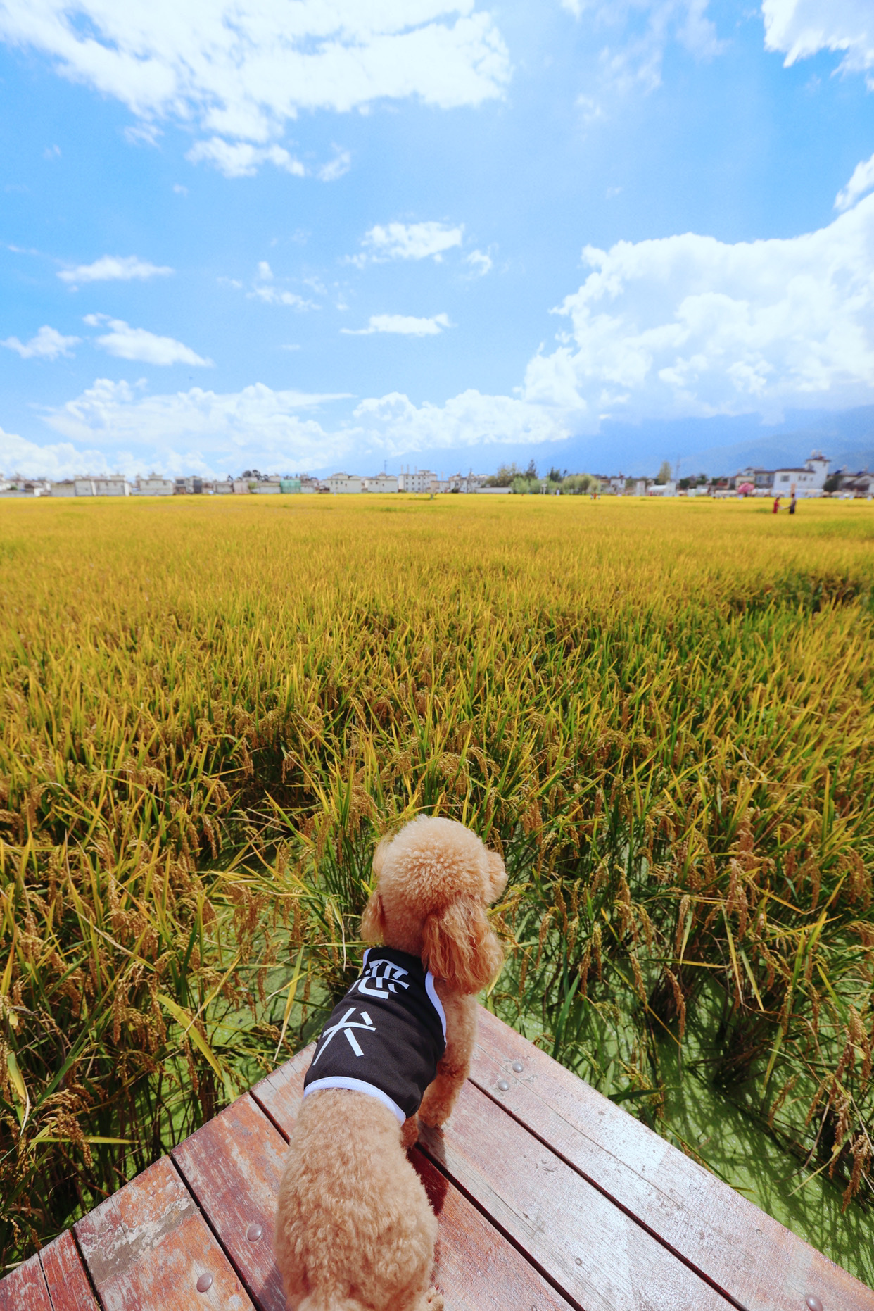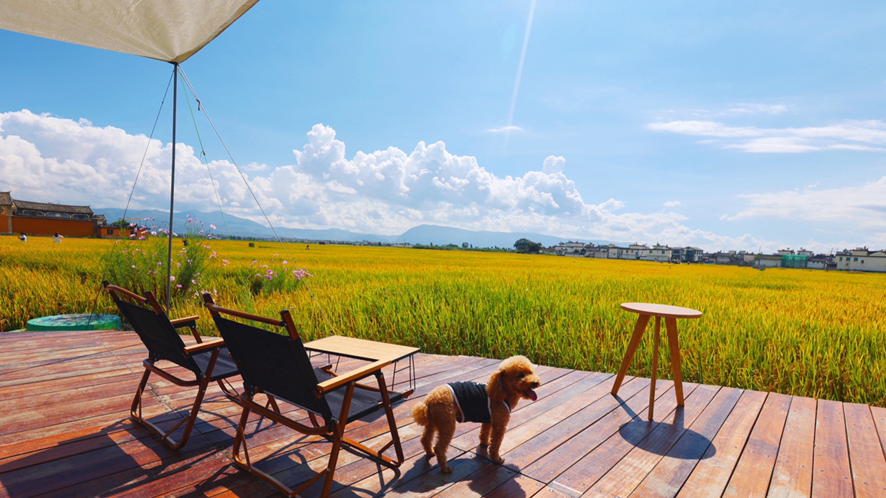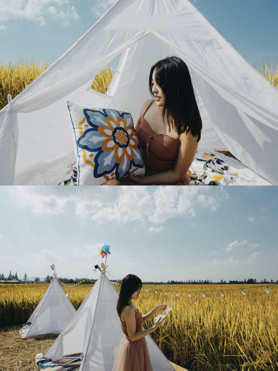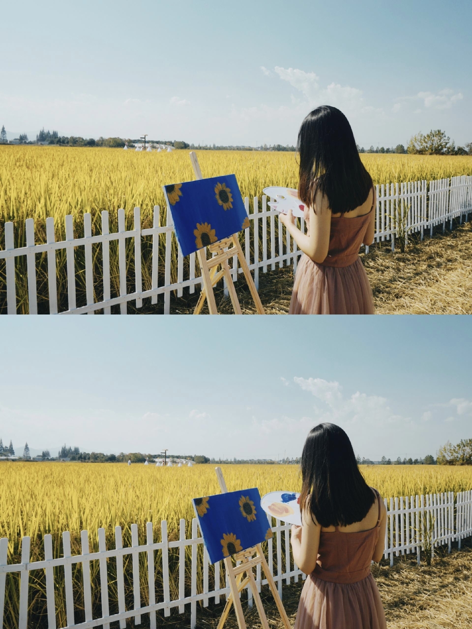 高升起,毫不吝啬地把阳光倾泻到大地上,倾泻到村落里的房屋、树木、围栏上,把村子染成了万山红遍的醉人秋色。