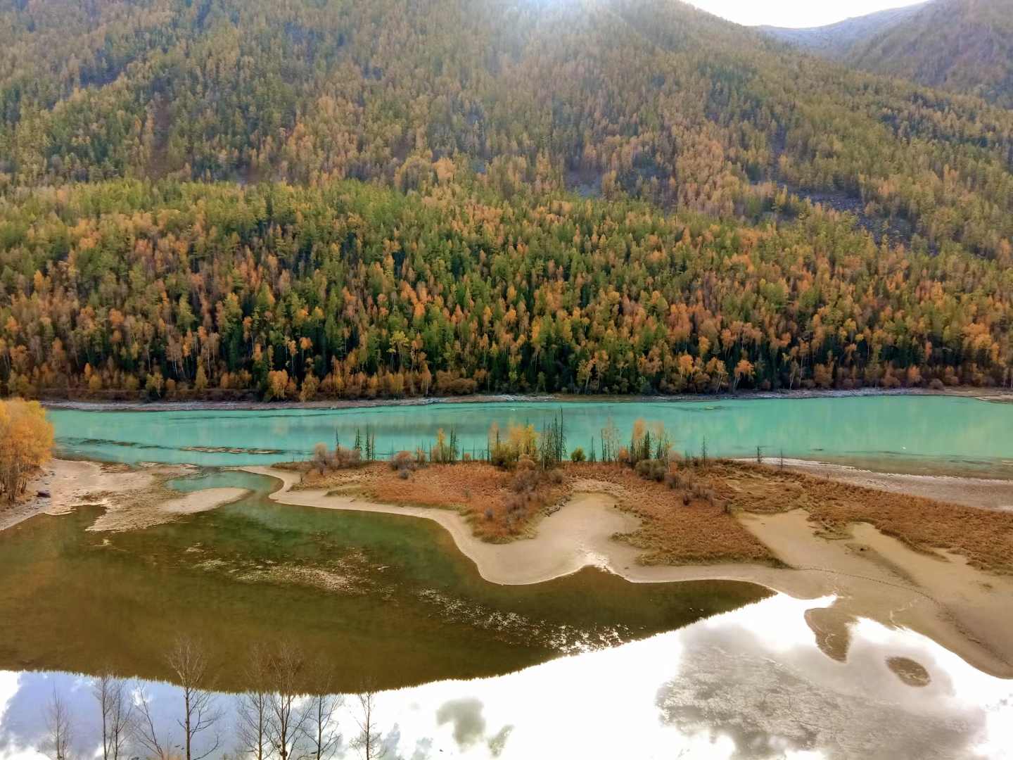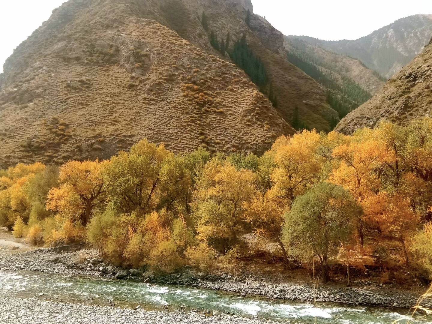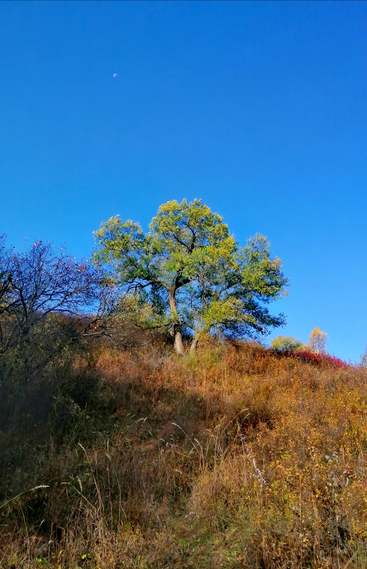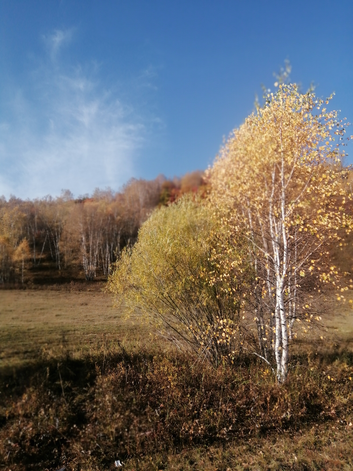从谷底到山巅各色树叶满山匾额犹如打翻的调色盘,美不胜收千叶万树,色彩分层一树引领,满沟呼应山林都随色彩跃动起来