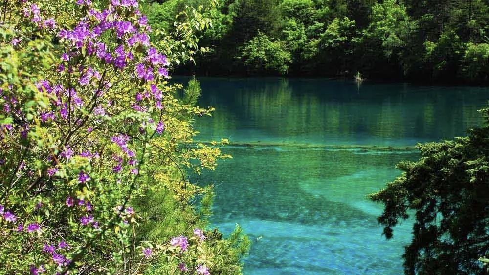 海子水质清丽澄澈,天光、云影、雪峰相映成趣,三分彩林的颜色与七分海子的魅惑,成为