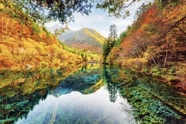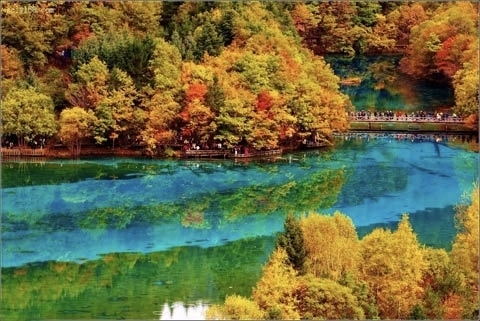 万分迷人的景致,游人驻足其间,体味着如诗如画的美景,更为九寨增添一抹秋的记忆。