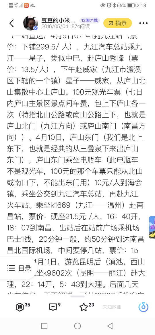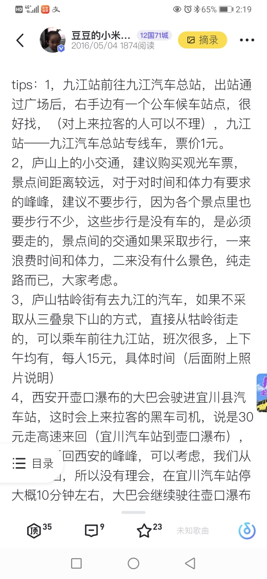时间看下图就好,不存在发车时间晚的问题,都是定点发车,其他方式去九江,可以打车,因为庐山上有个牯岭镇,实际上,住宿都在那里,牯岭镇上有原住民,所以可以乘坐他们的车去,就是黑车的意思。========== 如果你觉得TA的回答不错,快来给TA点个赞吧! 你的支持是对作者莫大的鼓励~显示全部