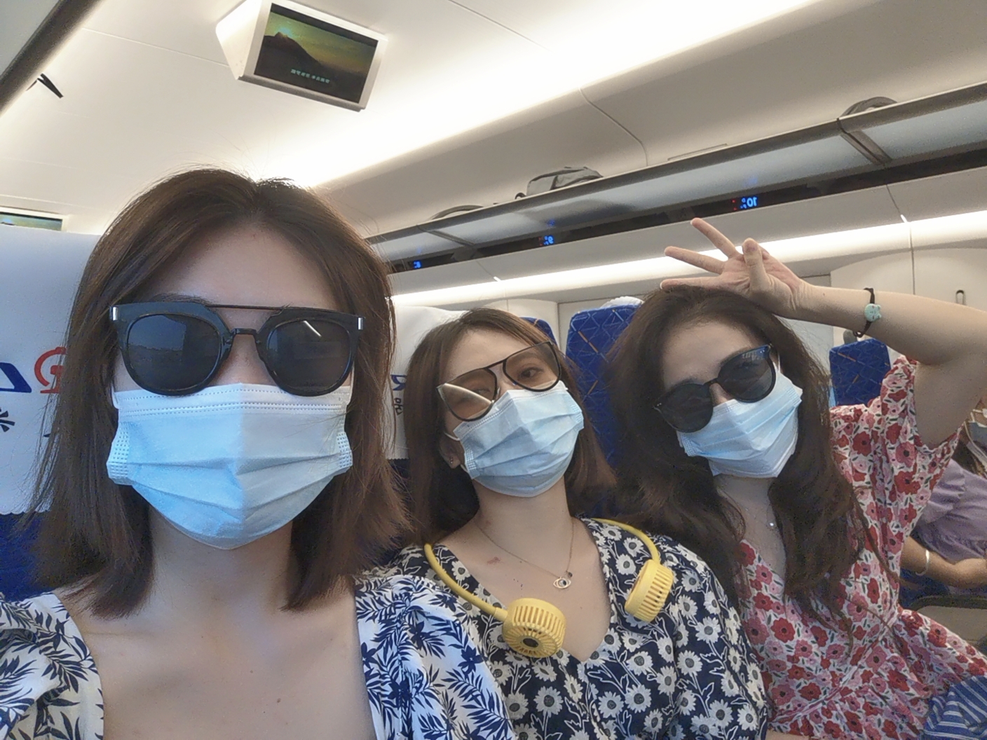 ,三个人赶动车跑得飞快差点赶不上趟,好在赶上了。