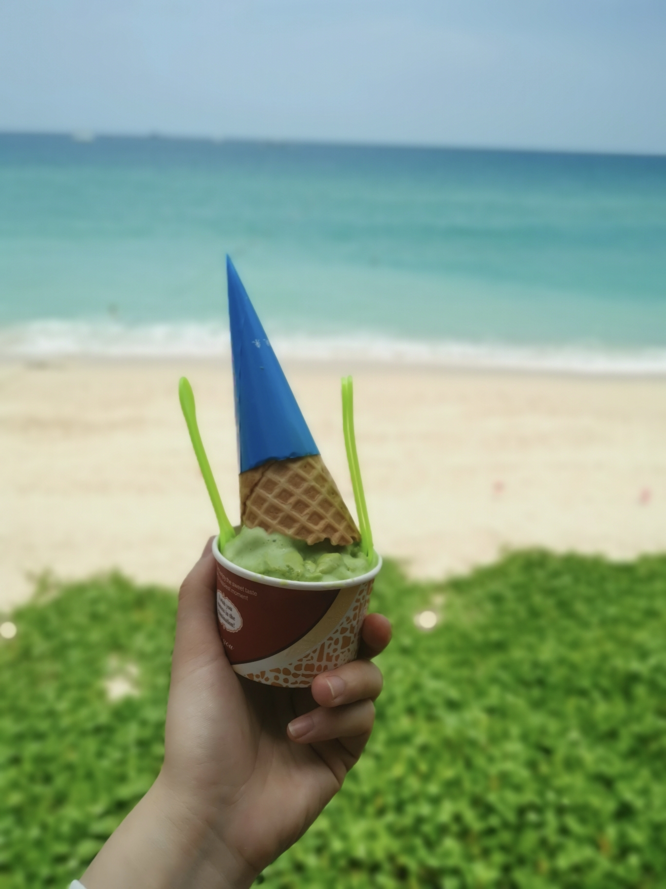 冰淇淋真的好好吃,抹茶味无敌了,小伙伴去浮潜我在岸上,别问为什么就是小女生的亲戚来了。哭唧唧