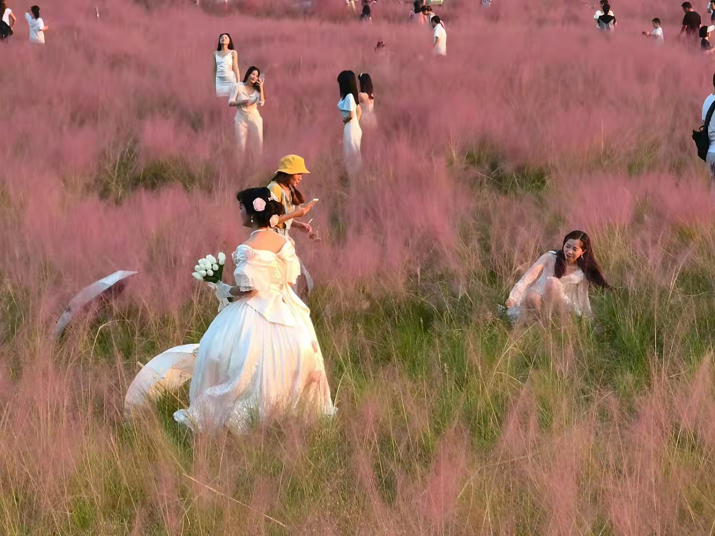 10月在礼嘉智慧公园,沉醉在粉黛乱子草花海,粉色的氛围让人仿佛回到18岁的青葱岁月。看着夕阳渐渐沉入花海瞬间,那一刻的美感很迷人。