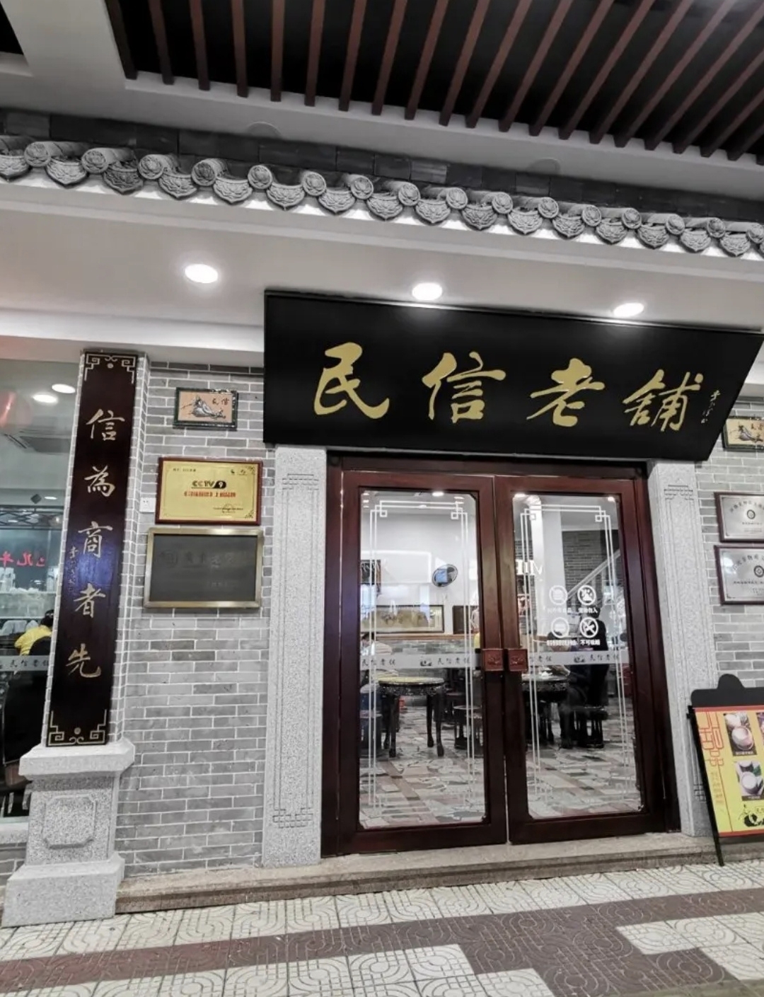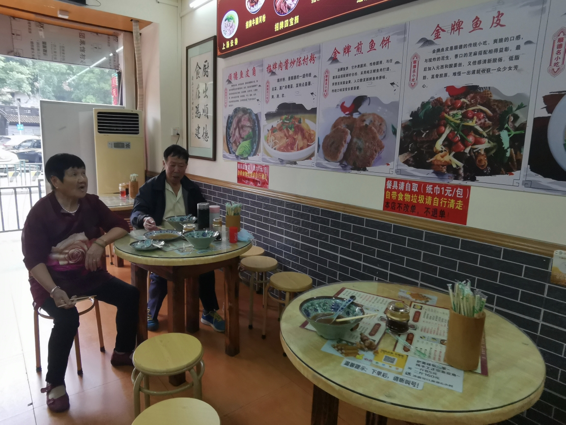 早餐店铺,我一看门口的招牌菜式图片感觉早餐还挺丰富,带着老爸老妈就进去入座了。