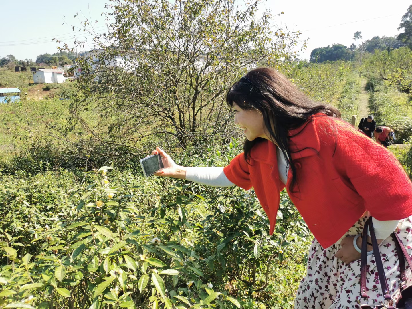 秋天,生态园1000亩茶叶地开花了,芬芳的小白花点缀在绿色中像星星一样闪烁于阳光下。说实话我真不知道茶叶会开花,长见识了。徜徉于茶海中一边欣赏一边拍了很多照片。生态园还有采茶村姑的服装道具可以借用哦。