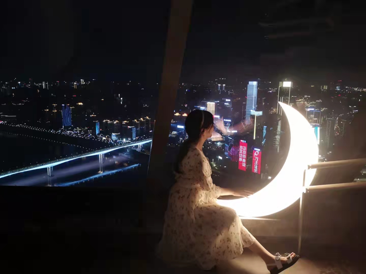 3,夜晚和朋友一起去海心沙公园,遥望