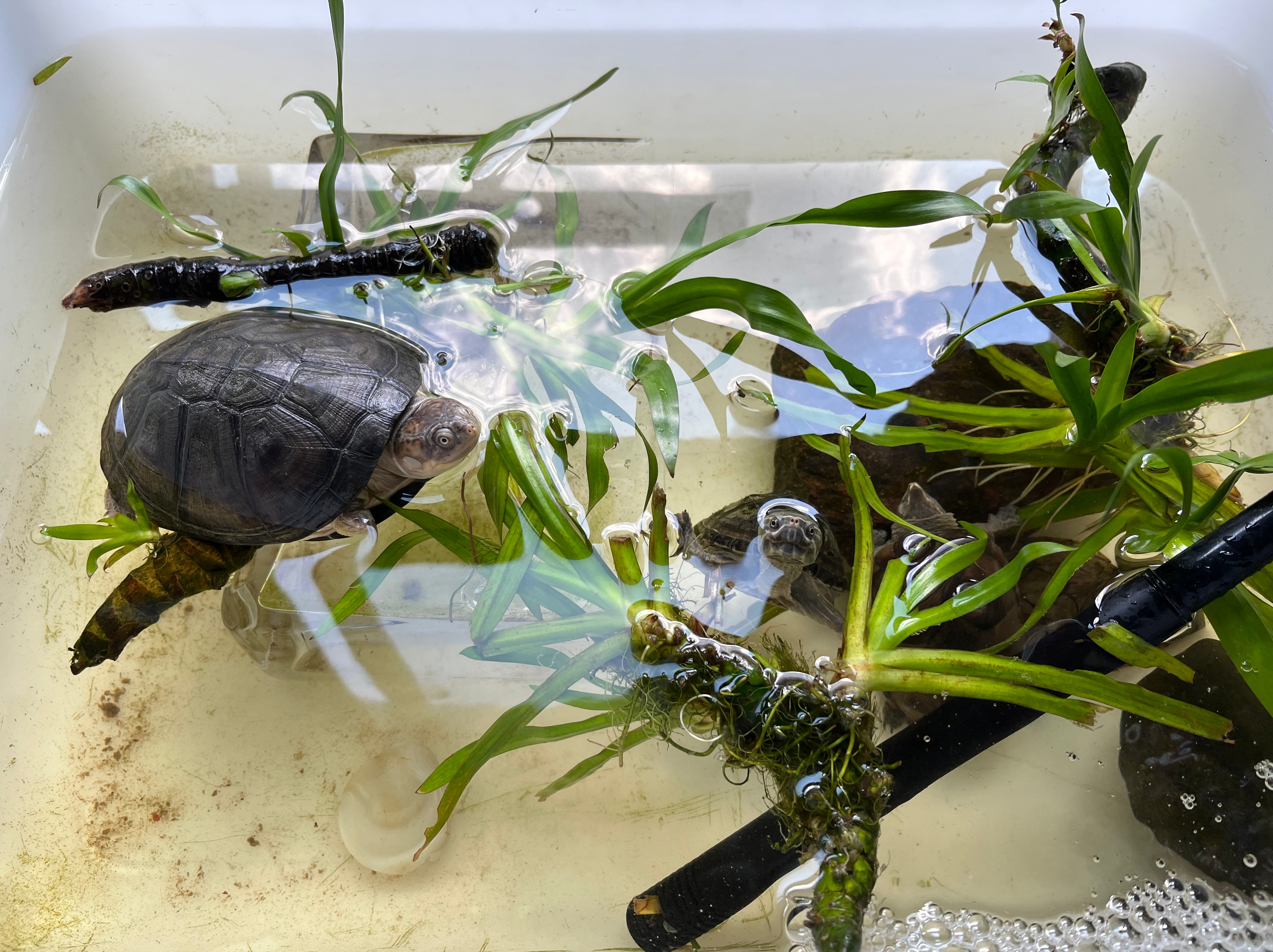 还有家里的熊孩子养的小龟龟们,在不能出去的日子里给他们一些水草,布置一个漂亮的房子,不也赏心悦目吗?