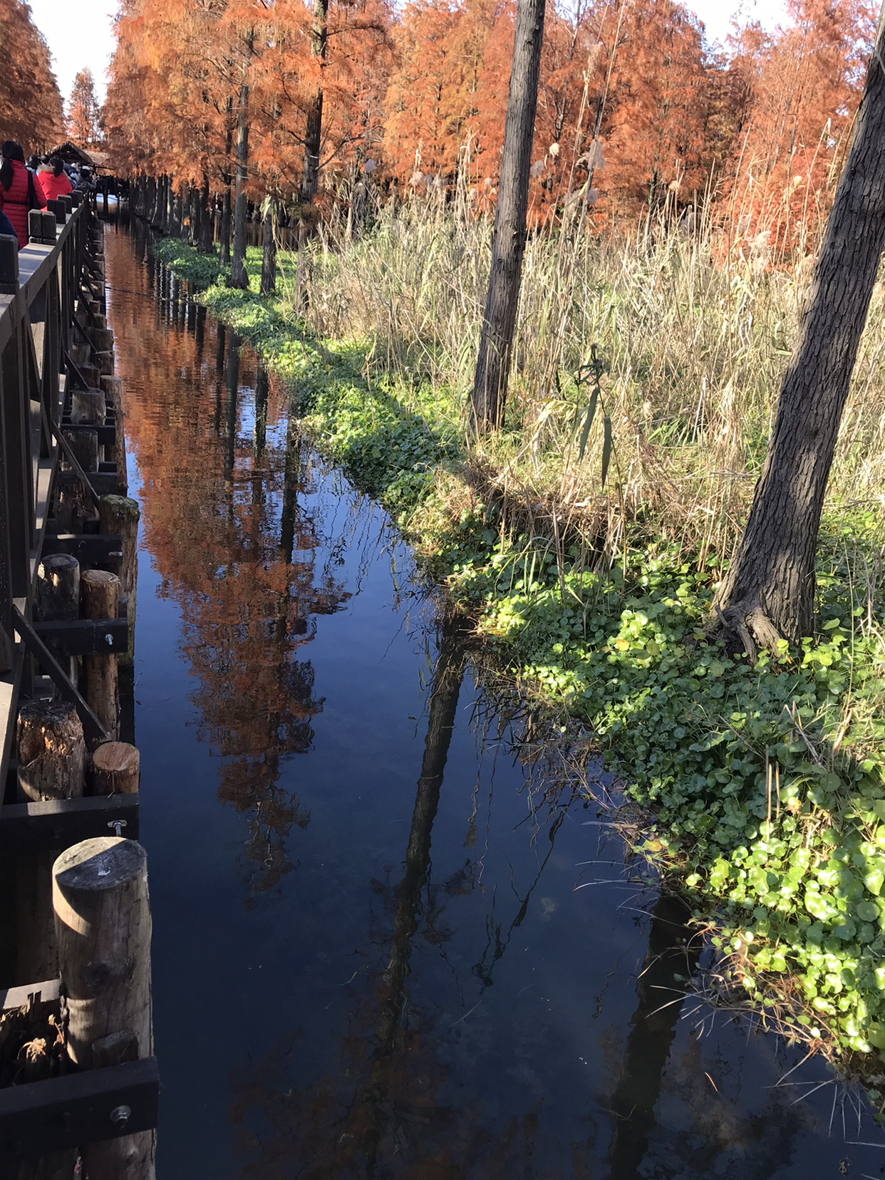 从游客中心到峡谷入口的十二连湖景观带有设施齐全的徒步大道,峡谷周围的山体好像天然屏障,挡住了戈壁上的寒风。一路上沿湖行走,暖阳当头,移步换景,很是惬意。