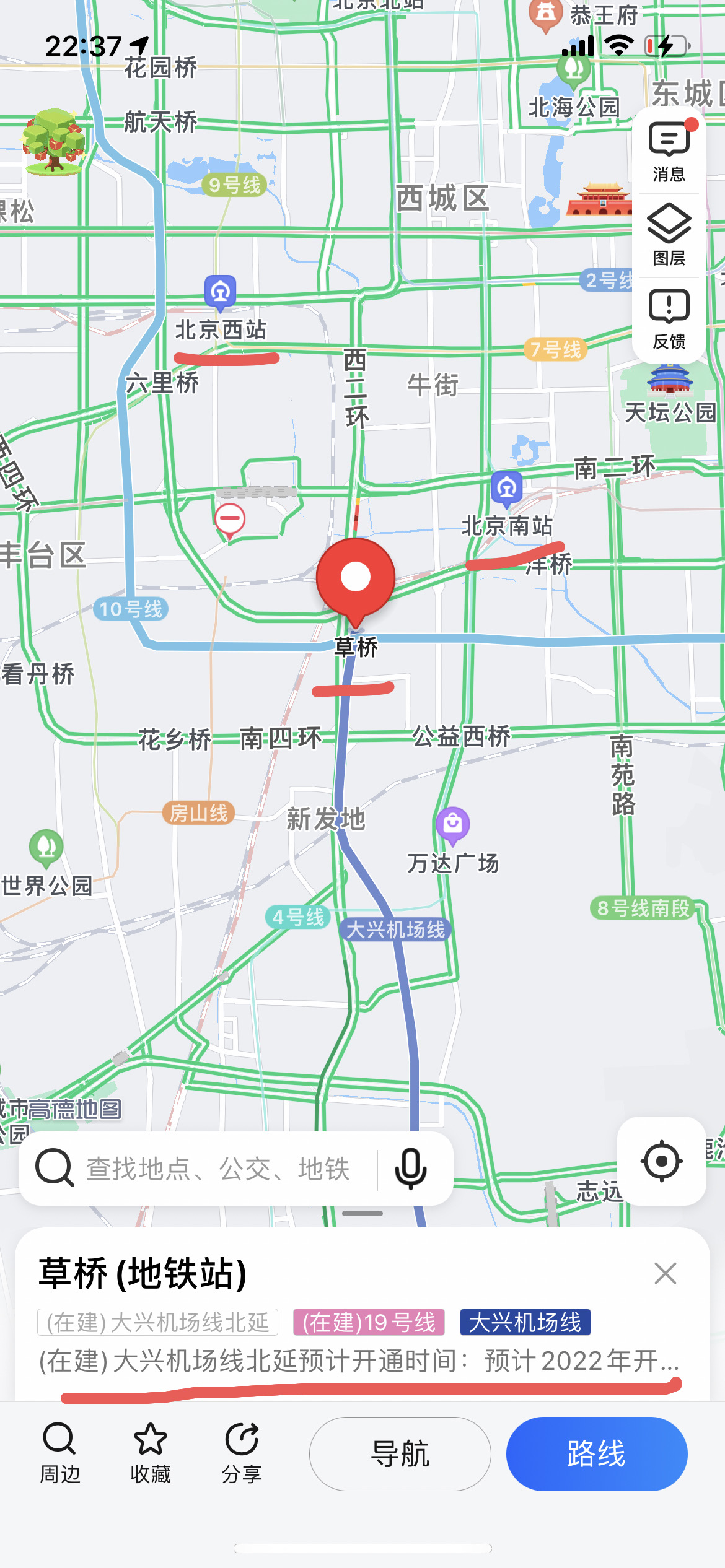 北京地铁大兴机场线于2019年09月26日开通,全长41千米,其中地下线23.65千米,地面线7.1千米,地面线10.61千米,设草桥、大兴新城、大兴机场线共设地下车站3座。运营时间6:00-22:30,发车间隔:8.5分钟-10分钟。全程用时仅19分钟,是国内运营时速最高的城市轨道交通线路。...显示全部