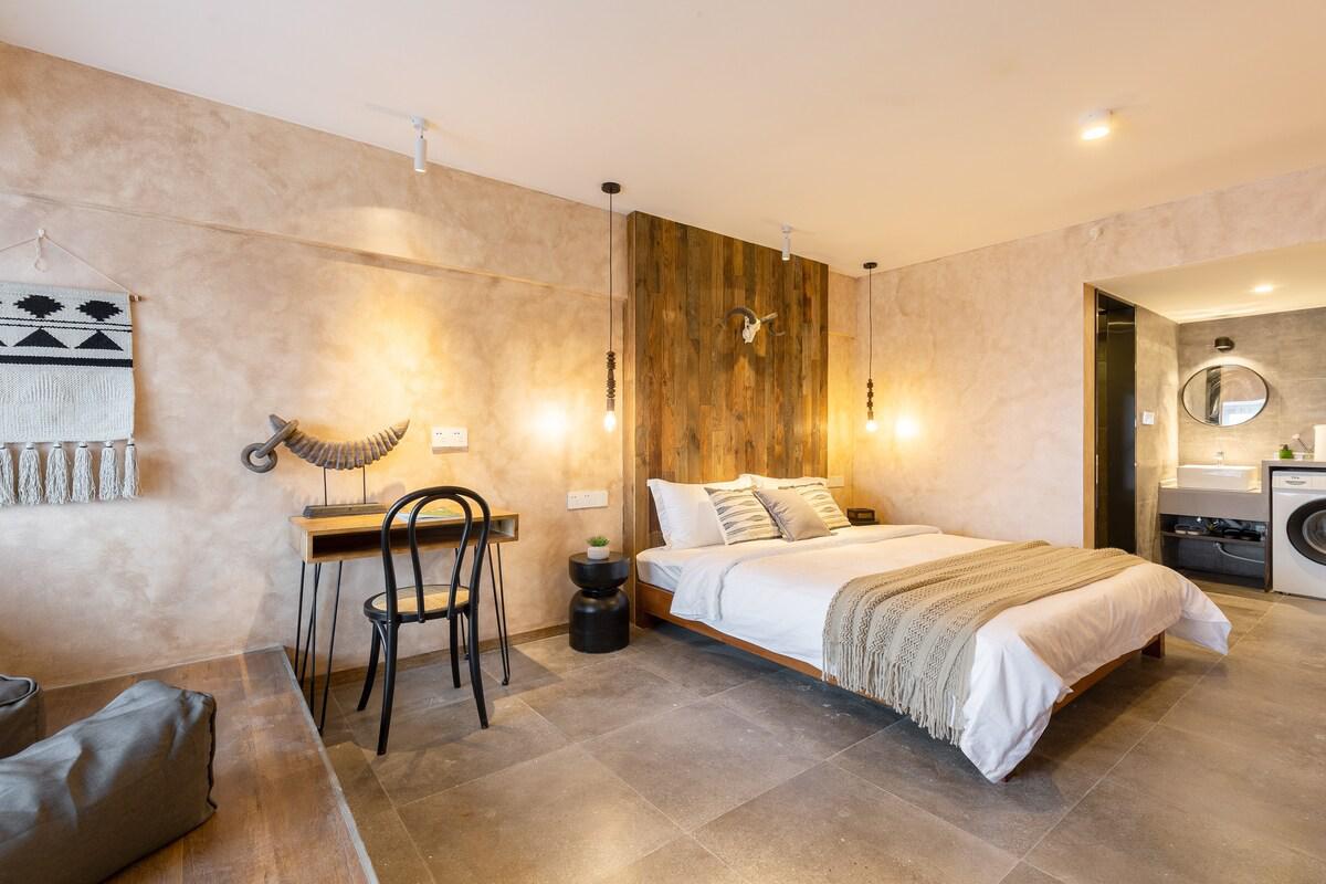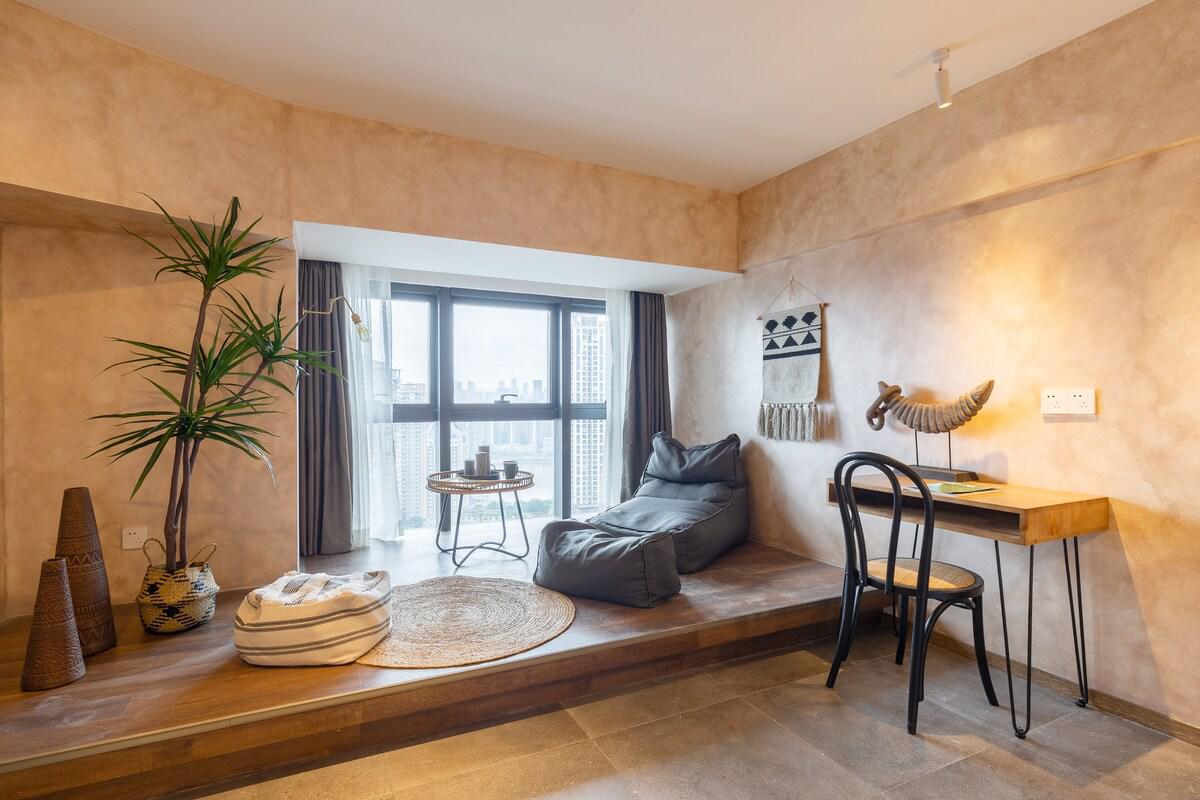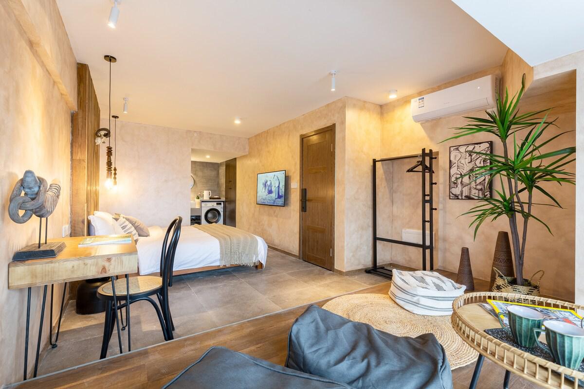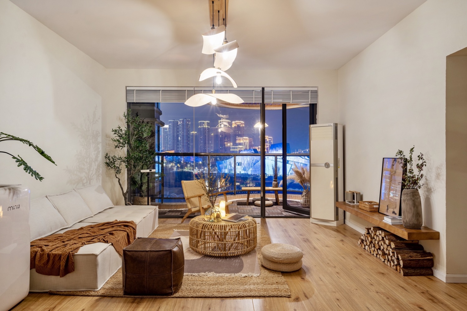 日式侘寂风,简约美学。超高层观景,俯瞰雾都。整个房间的色调都彰显了一个词:温柔。
