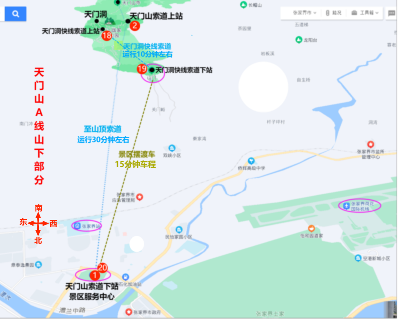 汽车站,到各个景区、动车站、机场都有车,非常方便,也可以考虑第三天结束天门山后直接坐车去吴家峪,天门山索道出口步行到