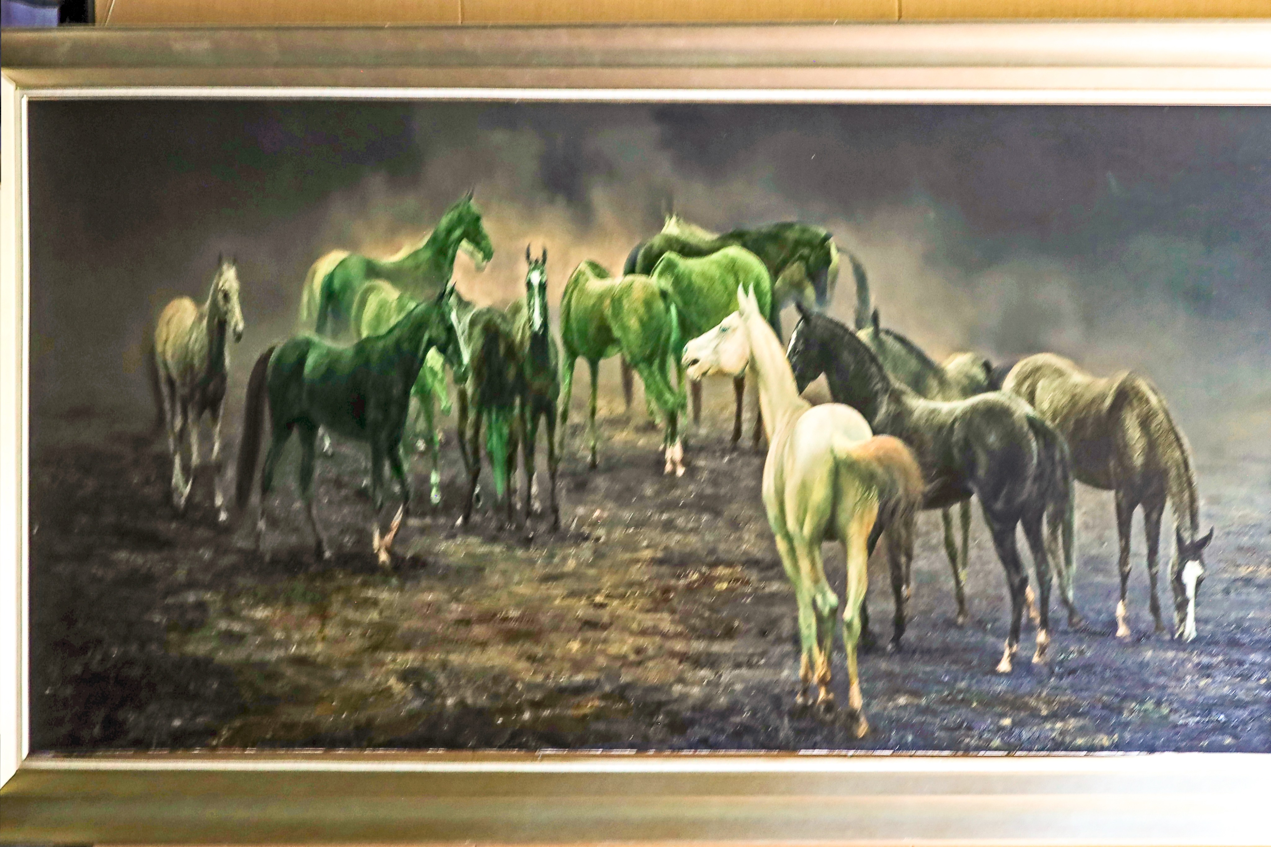 野马美术馆【马文化博物馆】,陈列的每一件古老器物,都讲述着与马有关的历史故事,有一幅幅以马为主题的油画,栩栩如生地展现了各种骏马的英姿飒爽,而两具汗血宝马实物标本的背后,是一段马与人之间真实而感人的故事。