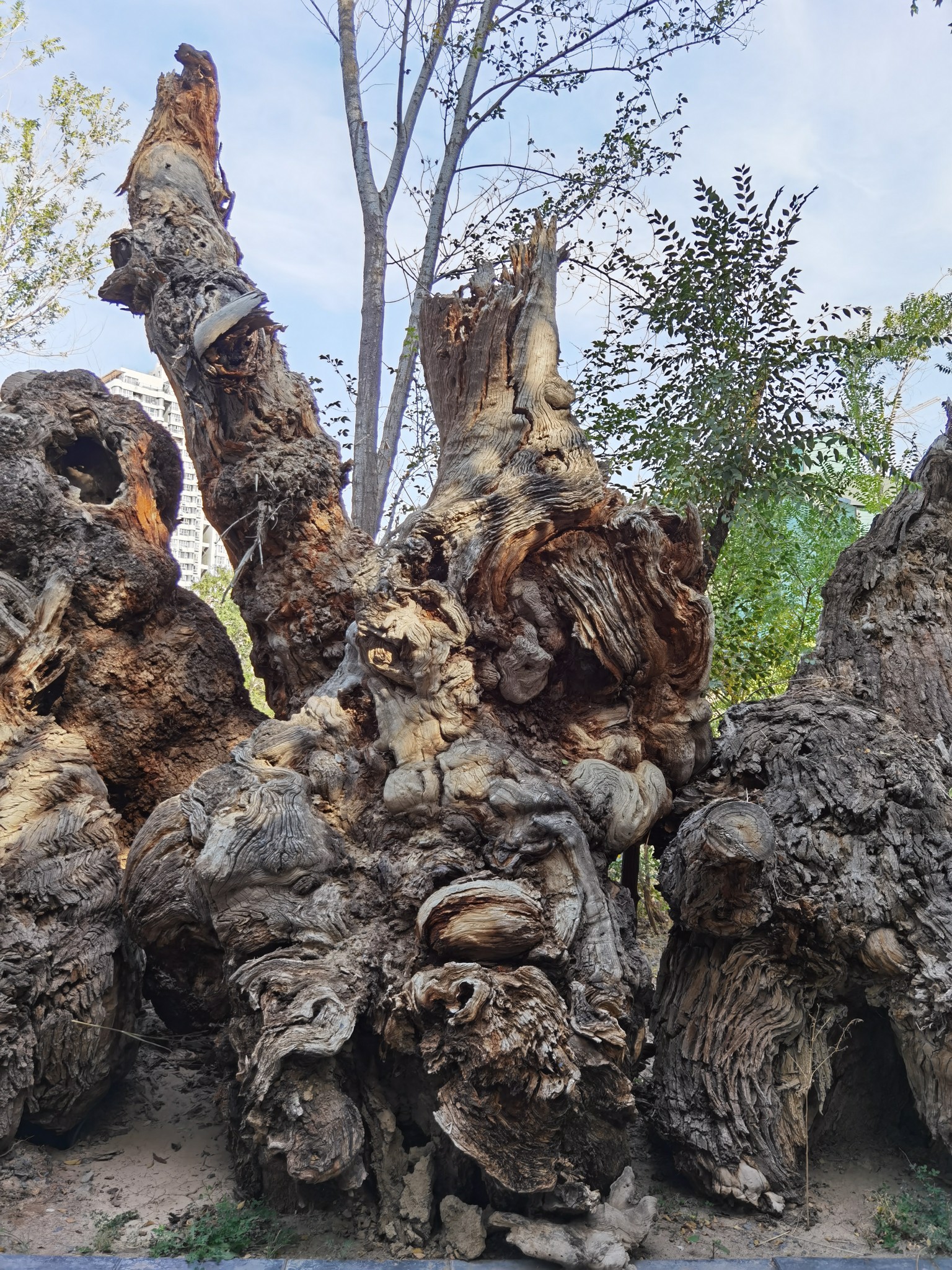 这些千年胡杨枯木被巧妙地安置在绿树成荫,湖水荡漾的园林里,它不但没有死气沉沉的朽木之态,反而令人感到它就是一望无际的沙漠 中阳刚、雄浑、苍劲、大气的大漠汉子,一身的凛然之气!