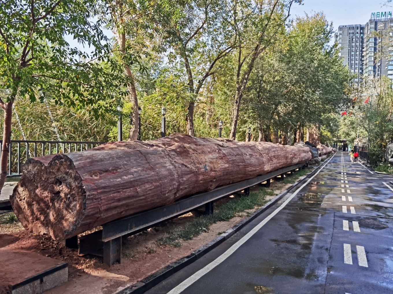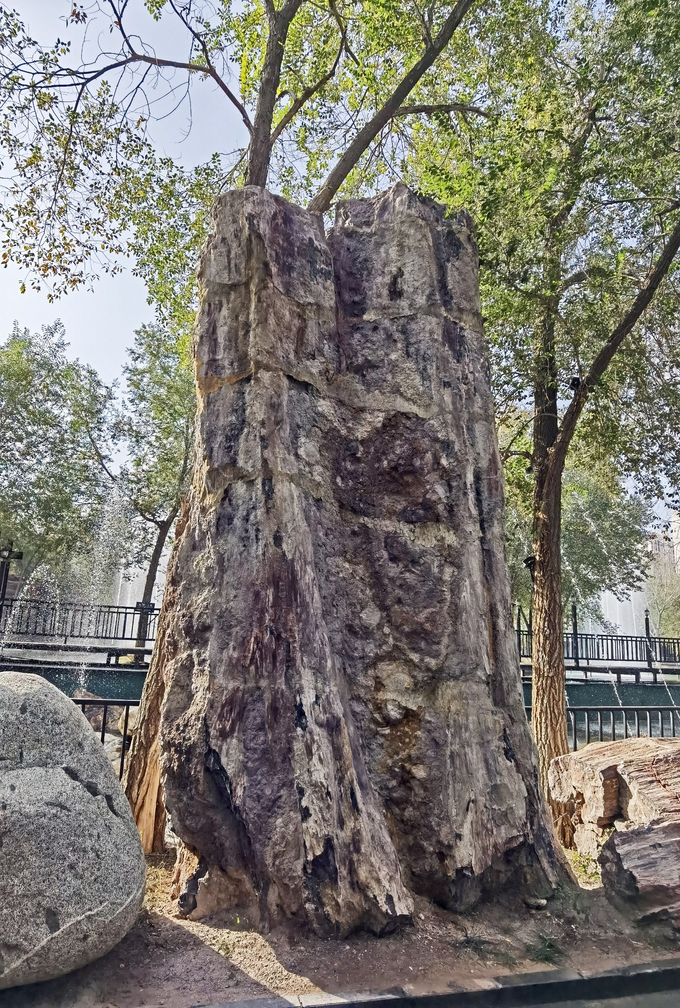 这里最长的一棵硅化木有43米,是全国最长的硅化木之一。因为它太长,它只能“躺”着。这里还“躺”着十几棵30多米长的硅化木 。