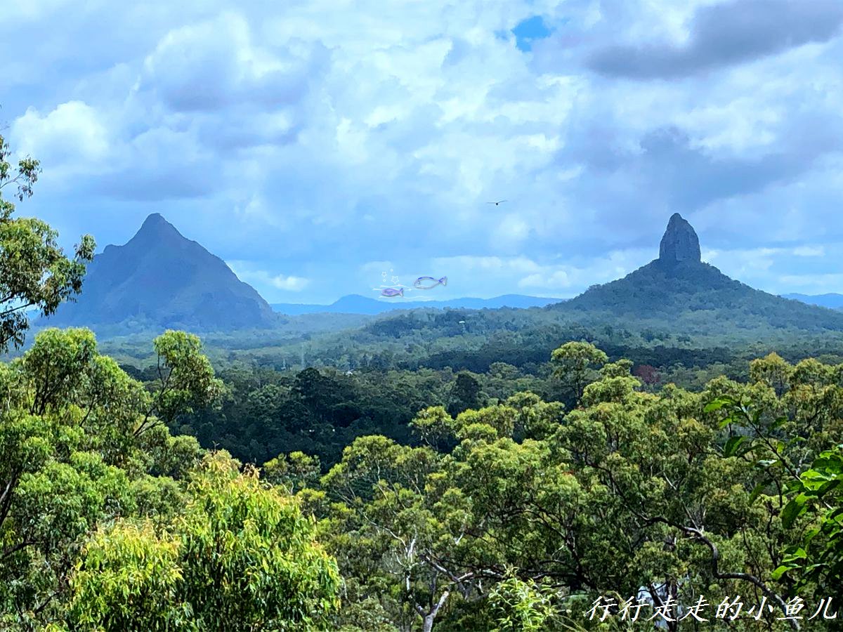 这两座山神左边的是Mount Beerwah,是十一座山里面最高的,海拔556米,可以攀爬。右边这个像个锥子一般细长的山峰叫Mount Coonowrin