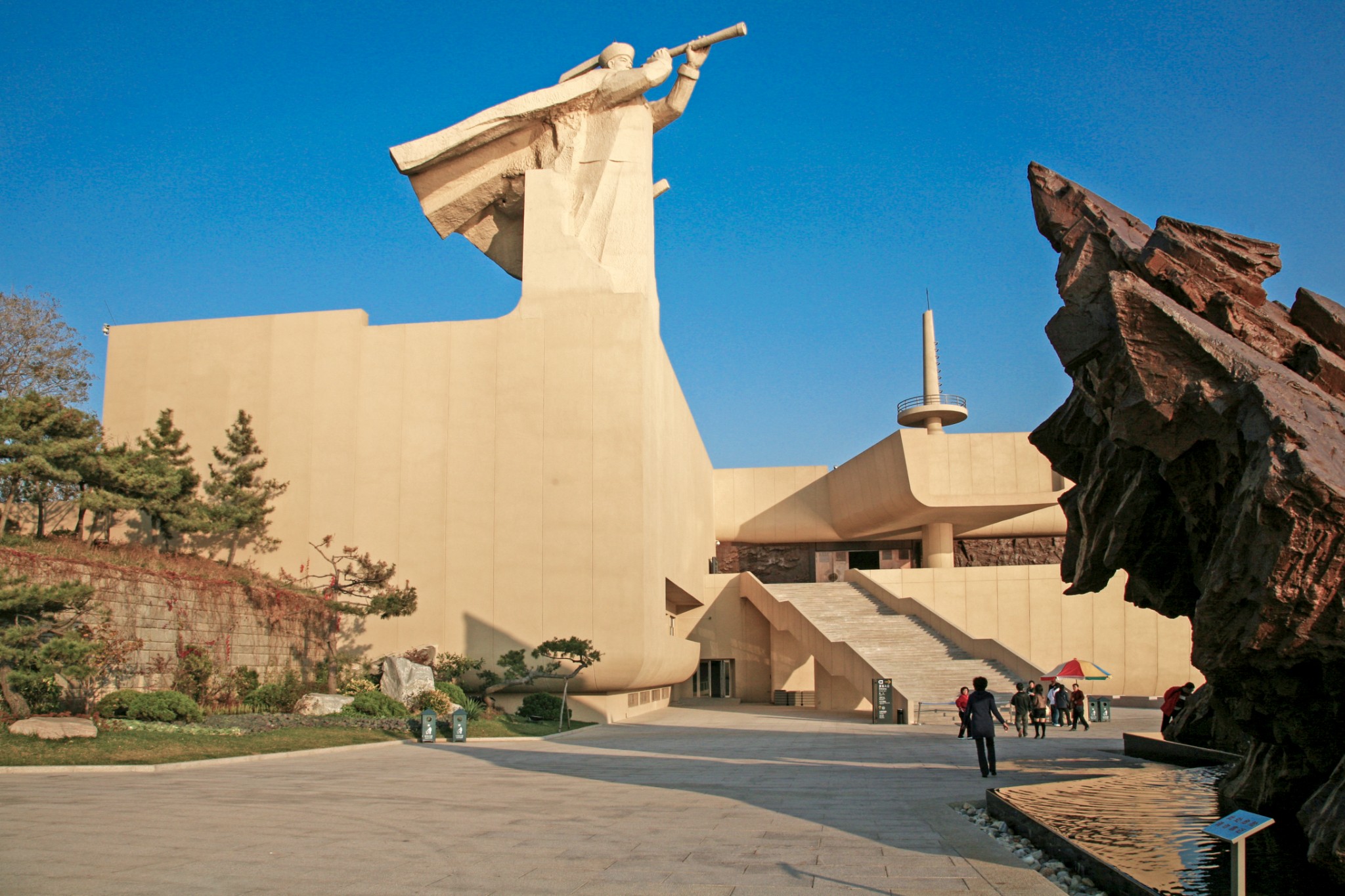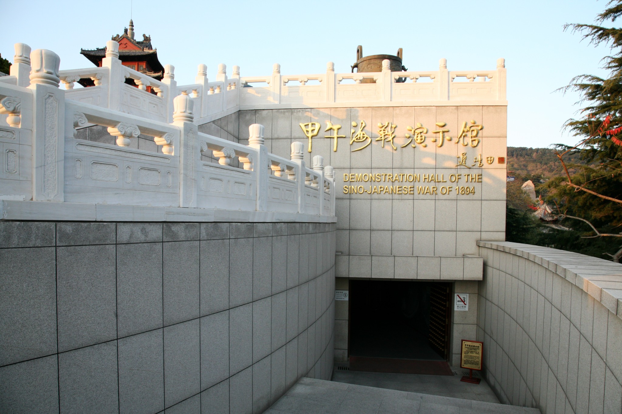 【 中国 甲午战争博物馆陈列馆】是一座全面展示中日甲午战争历史的综合性展馆。该馆占地面积10000多平方米,建筑面积8800平方米。主体建筑由著名的建筑设计大师、中科院院士彭一刚教授设计,该建筑构思大胆,造型独特,创造性地将象征北洋海军舰船的主体建筑与巍然矗立的北洋海军将领塑像融为一体,被誉为“20世纪中华百年建筑经典”。