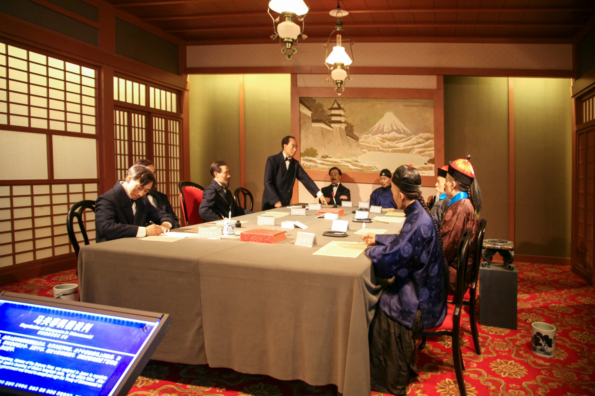中国甲午战争博物馆陈列馆该馆以《甲午战争:1894—1895》为基本陈列,共展出珍贵甲午战争历史图片650多幅,复制了大量甲午战争时期的武器装备,还原再现了多个超写实人物塑像场景,如:“ 金州 曲氏一家投井场景”、“李鸿章在 马关 谈判场景”等,开辟国内首个“黄海海战”3D影视厅,声光电与多媒体复合再现“