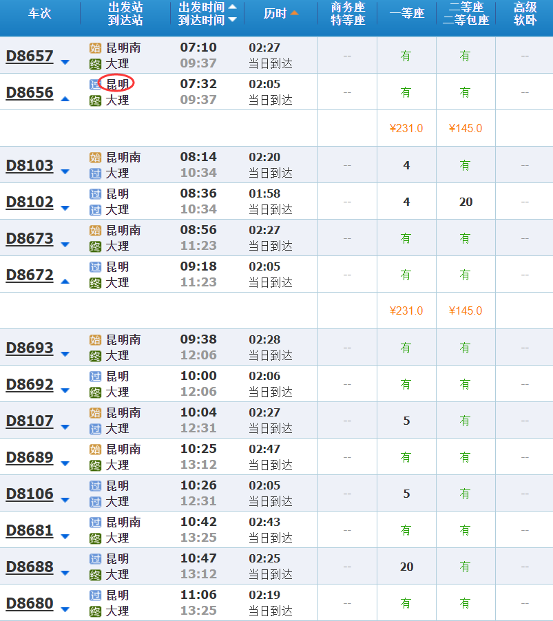 [题主采纳]昆明长水机场乘坐机场快线到昆明站,入住昆明站附近酒店,第二天从昆明站乘坐动车或高铁前往大理,每天有很多车次,部分车次时刻如下:========== 如果你觉得TA的回答不错,快来给TA点个赞吧! 你的支持是对作者莫大的鼓励~显示全部