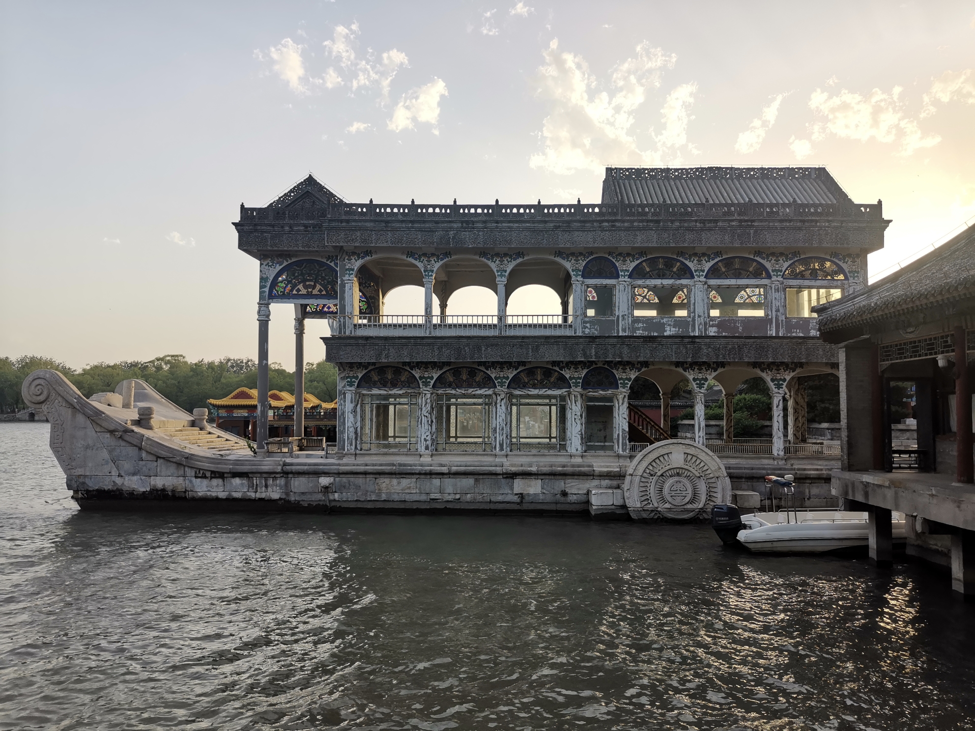 西洋画舫位于昆明湖西北侧,长廊往西走的尽头。日落与画舫合影会逆光。
