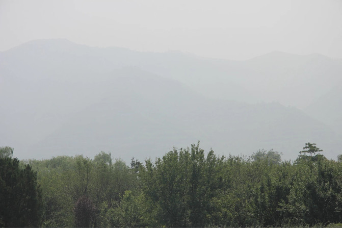 这个地方盛产石榴,所以到处可见石榴树的身影。背后是骊山。