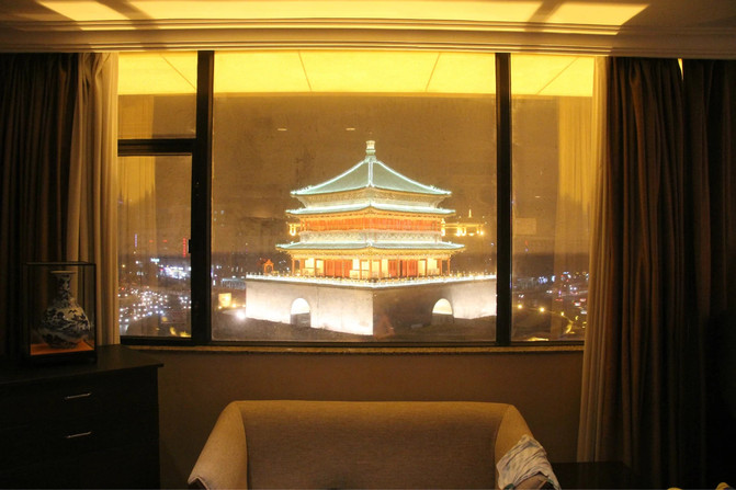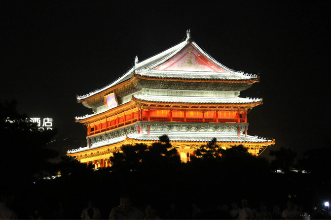 回到酒店楼下,睡眼惺忪,但是夜晚的钟楼确实惊艳,华光溢彩,流丽缤纷,又不失古朴和大气。(回来车费:150元)