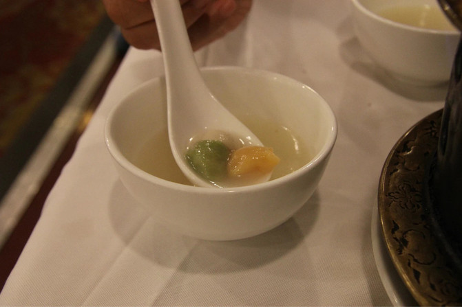 这是最期待的,珍珠水饺,就跟指甲盖那么大小,但是这是我认为这个套餐里最好吃的。