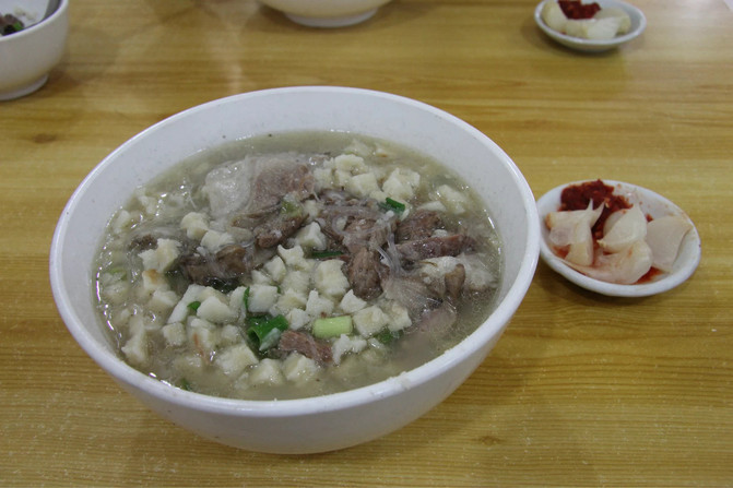 最享牛羊肉泡馍盛名。逛了两条街想寻找回坊里最地道最正宗的羊肉泡馍老店,当地最有名气的当属老孙家和老米家两家,发现路边有好多打着老孙家和老米家羊肉泡馍的馆子,就选择了一家坐了下来,两碗羊肉泡馍,一碗38,确实和在 济南 尝过的大不一样,肉料汤浓,香醇味美,粘绵韧滑,食后回味无穷。