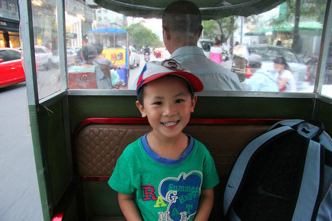 我觉得打车很困难,也不是车不多,就是他们交接班的时间和我们这里不大一样,中午交接班的比较多,好不容易叫到一个,距离近的人家还不去,有的干脆不停,问号!所以我们干脆打个电瓶车吧,这样儿子还更开心,他觉得特别有意思,不过还真有逛古城的感觉。