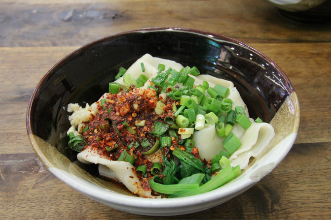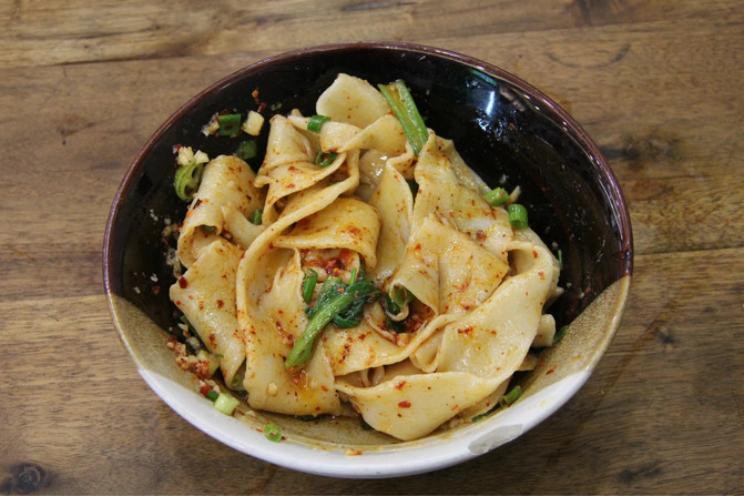 有一种面食是名特小吃,那就是biangbiang面(发音,没打出这个字来),当地还流传着一段幽默风趣的biang字歌谣,概括了这种面的产地特性、食者感受、制作工艺要领、原料、调料、做面人辛勤操作等等各方面。秦人性格气质,心底宽长,有棱有角,大苦大乐的爽快精神,由此而引出 陕西 人为之自豪的饮食文化。