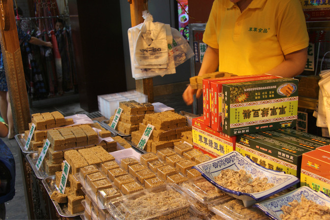 特产和小物件:回坊里有正宗的军军绿豆糕,和我们平时吃的绿豆糕可能不是太一样,我感觉它很像南方酥糖的口感,软绵可口,带甜不腻,各种口味都有。当地你还可以买些小物件,譬如说小绣花鞋,手工缝制的小毛驴, 陕西 皮影,因为我很喜欢这些小东西所以也就不嫌麻烦都捎带了点儿。(礼品:240元)