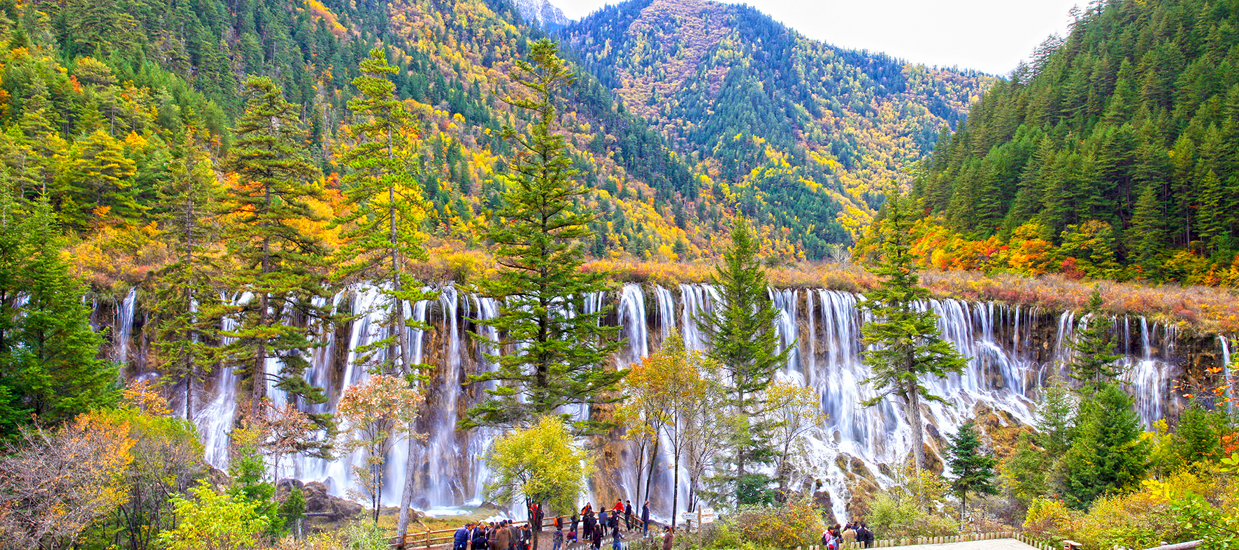 【诺日朗瀑布】海拔2365米,瀑宽270米,高24.5米,是中国大型钙化瀑布之一,也是中国最宽的瀑布,众多的影视剧曾在这里取景,包括中央电视台1986年版电视剧《西游记》的片尾就是在这里拍摄的。