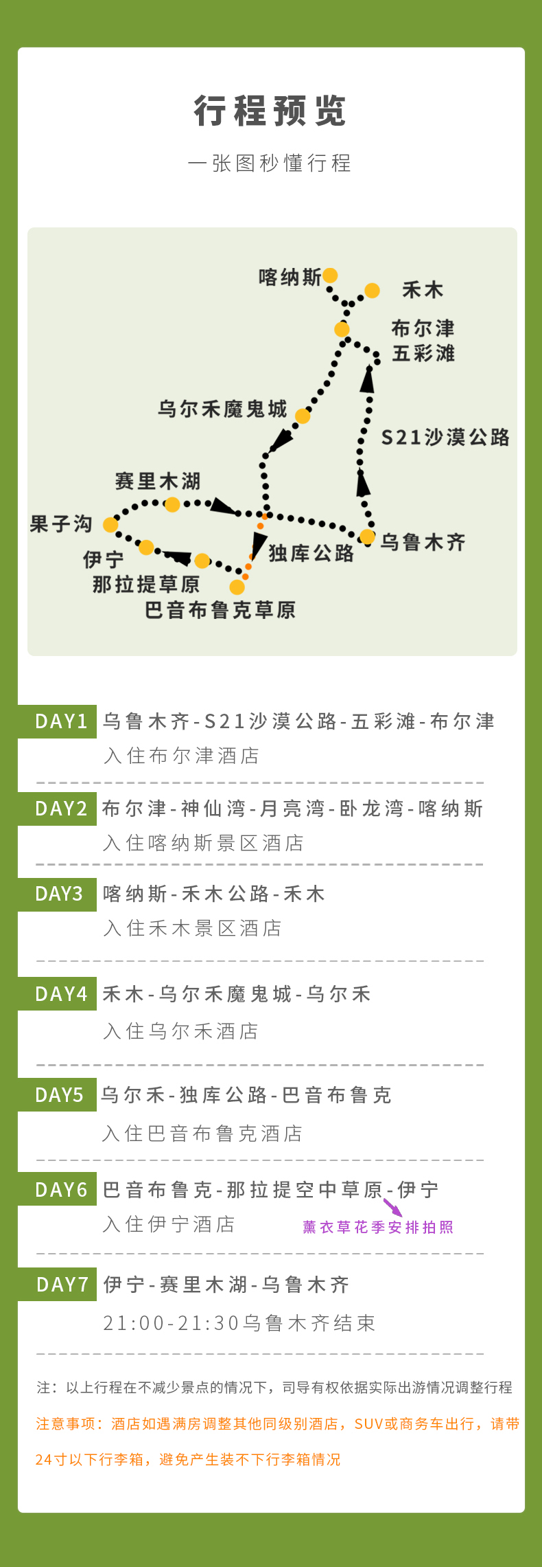 新疆呀, 经历了前两年的疫情封锁,今年新疆的政策还是比较有好的,低风险去带核酸+绿码,然后落地核酸,并在旅行过程中2天左右做一次核酸就行。再不会有去年不让进,不让下高速的一刀切政策。根据我们几个平台的数据,目前新疆最火的还是北疆7日的行程,主要游玩点为下面这些:喀纳斯,禾木,赛里木湖,独库、...显示全部