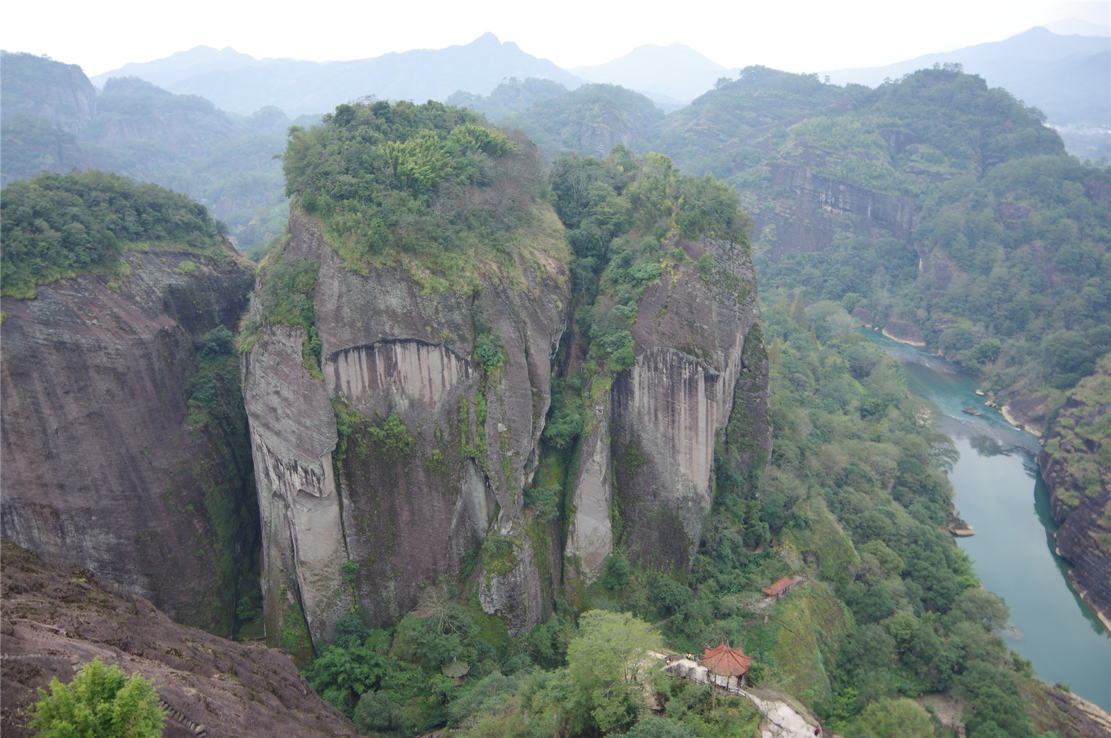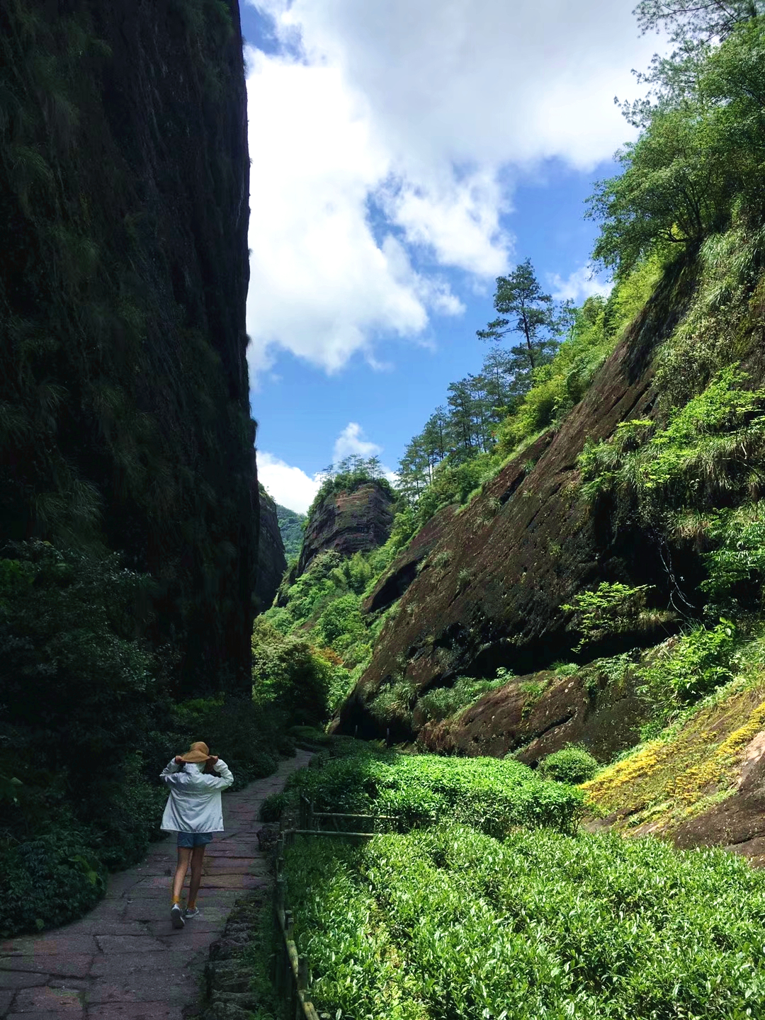 主景区观光车大约在下午五点左右陆陆续续下班,主景区大约七八十平方公里,没有观光车你们就得留在山里跟猴子们一起玩耍了………………第二天:上推荐早早坐经典的九曲竹筏,竹筏越早越好,最近天气有点燥,太阳一出来,哪怕水上晒着也还是很可怕滴,竹筏大约2小时全程前后,一上岸就是武夷宫,武夷宫已经玩过,接着就去走岩骨花香漫游道,也就是大红袍到水帘洞的那条路。全程大约3小时左右,公里数大约是6公里,这条路导游团走的比较少。所以任何时候人都不会很多,不过很值得一走。途径慧苑寺,古崖居遗址等地方。晃晃悠悠走一个下午还是比较幸福的。大部分是平路,部分台阶,小溪涧,山谷,林荫路……走完这条路,到水帘洞的山脚,如果比较累的话,水帘洞可以不去,反正也是没什么水的,,,如果有上去就怎么上去怎么下山到山脚,走大路到水帘洞乘车点坐观光车。