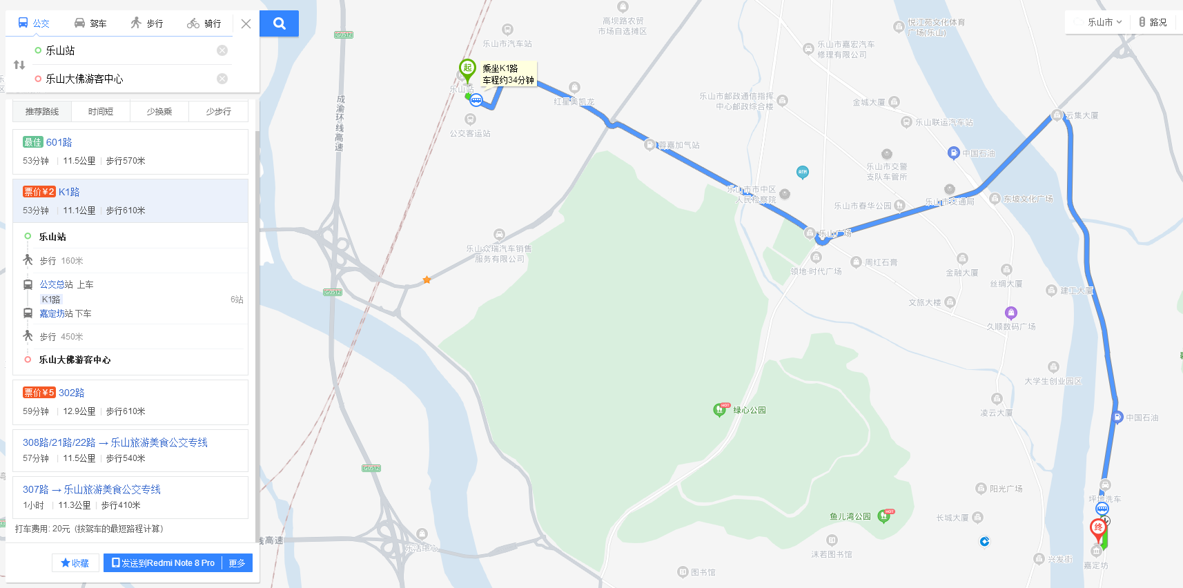 到达乐山站后可以乘坐K3路,601路去往乐山大佛景区。