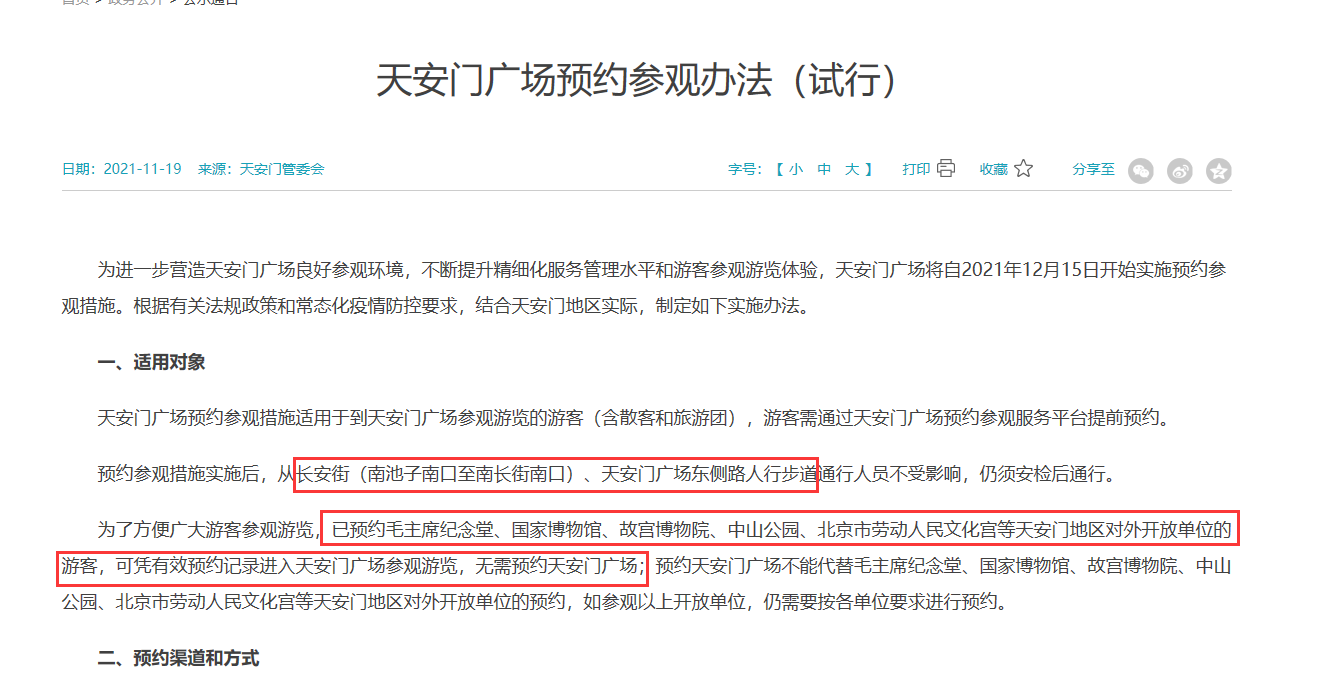 天安门广场目前暂停了当日预约,必须提前一天预约。如果没提前预约的话,目测只有以下两种办法。1.长安街北侧、天安门广场东侧不需要预约,安检后通行,可走这里远看下。2.已预约主席纪念堂、国家博物馆、故宫博物院、中山公园、北京市劳动人民文化宫等天安门地区对外开放单位的游客,可凭有效预约记录进入天安门...显示全部