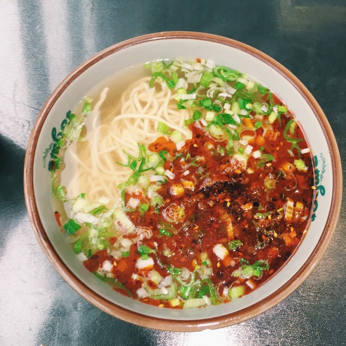 ①早上到达中山桥,在中山桥南,临夏路中山小学对面的马有布牛肉面,吃碗大牛(大碗牛肉面),消化不是很好就吃个毛细,要劲道就吃个二细,还有细的、三细、韭叶、宽的,各有所爱,哈哈,吃牛肉面要放些辣子的,没辣子就没有牛肉面的感觉了,也不是很辣哦。老板,来个大牛,细滴,辣子多些,蒜苗子多些。双飞就是加一份儿牛肉跟鸡蛋~