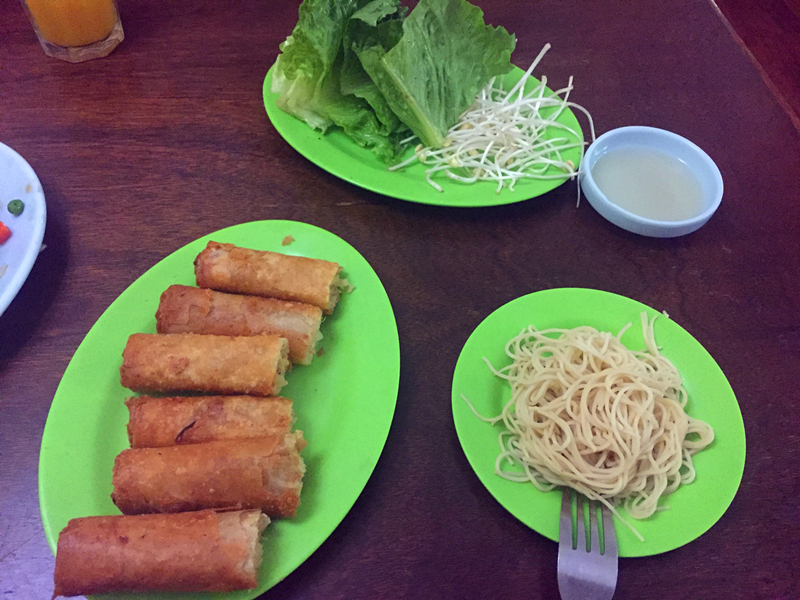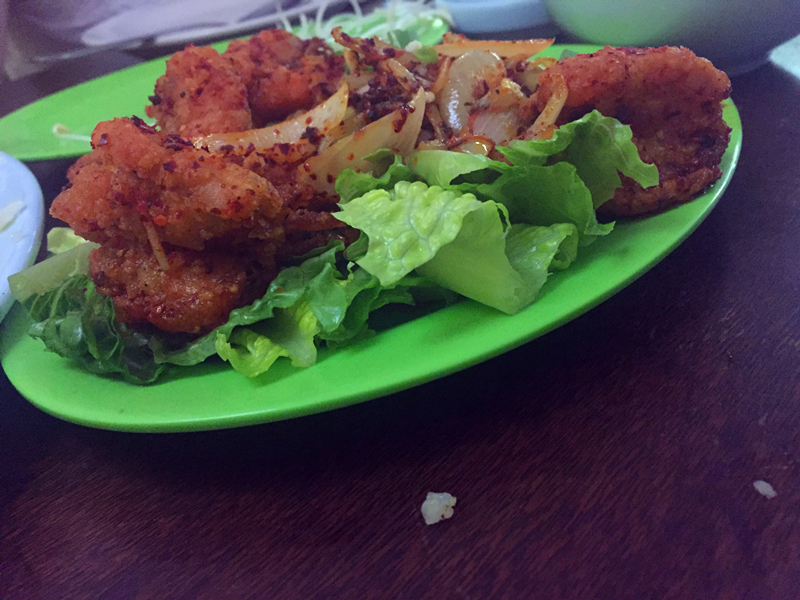 拉德海滩晚上回来的时候已经是下午五点左右了,颠了一道,又饿又饿又饿,听同行的人说有一家 越南 餐厅灰常好吃,我们决定晚上也去尝试一下。话说这个餐厅也是够逗比的,服务员可能都是属树懒的,上菜很慢很慢,收拾桌子也很慢很慢,明明有空桌,然后跟我说 wait ten minutes please. 心好累。然后冷气开的特别大,我们坐在一个空调下面,一直打喷嚏,后来炒饭都是凉着吃的。最后点了炒饭+猪排,春卷,盐焗虾,炒饭还不错,春卷用大白菜叶子包着吃,盐焗虾还不错,肉很肥这顿饭连小费算是大概是40刀左右。