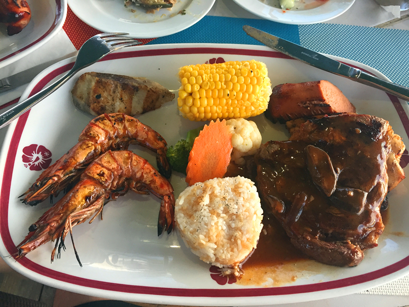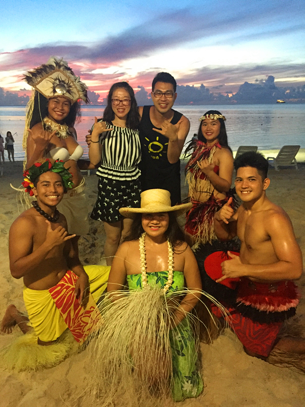 军舰岛晚上从军舰岛回来的时候,很明显是晒坏了,也晒粘了,需要注意的是从海 水里 出来的时候一定要擦干赶紧涂防晒霜,要不就跟被人煮了似的,太阳太毒了。晚上回到酒店,预订了一个海边的BBQ,各种沙拉 是自助形式的,烤肉是一阵盘给上来的,各种肉,然后又草裙舞表演看。