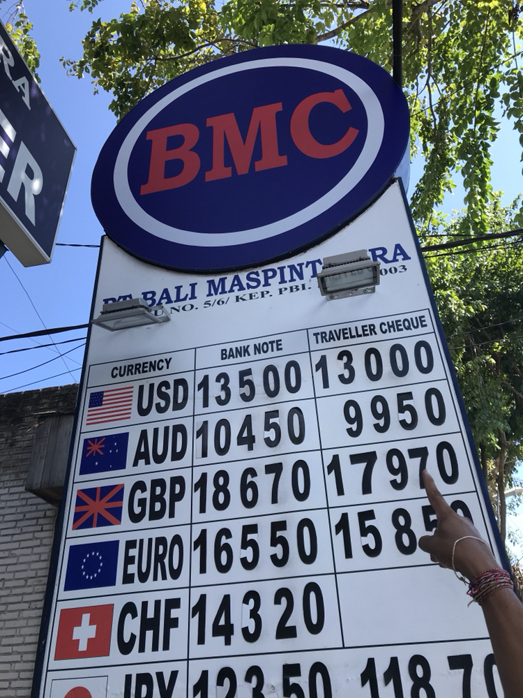 1、在巴厘岛当地,美金和人民币等值的情况下,大多数正规的兑换店,美金汇率比人民币好那么一丢丢,就一丢丢,除非你换很多很多很多钱,一般都可以无视这个汇差。2、如果你手上有现成的美金,就带美金来巴厘岛换印尼盾,如果没有,就带人民币来巴厘岛换印尼盾。3、不推荐在国内用人民币购汇美金,再带美金来巴厘岛...显示全部