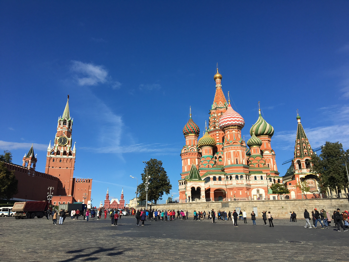 红场(俄文 красная площадь 英文Red Square)位于俄罗斯首都莫斯科市中心,临莫斯科河。红场是莫斯科最古老的广场 ,是重大历史事件的见证场所,也是俄罗斯重要节日举行群众集会、大型庆典和阅兵活动的地方,著名旅游景点。是世界上著名的广场之一。红场的北面为俄罗斯国家历史博物馆, 东面是莫斯科国立百货商场,南部为圣瓦西里大教堂。西侧是列宁墓和克里姆林宫的红墙及三座高塔,列宁墓上层,修建有台。每当俄罗斯重要仪式时,领导人就站在列宁墓上观礼指挥。每到整点或半点,在无名烈士圣火旁都会有换岗交接仪式,想要亲眼目睹兵哥哥真容的注意啦!
