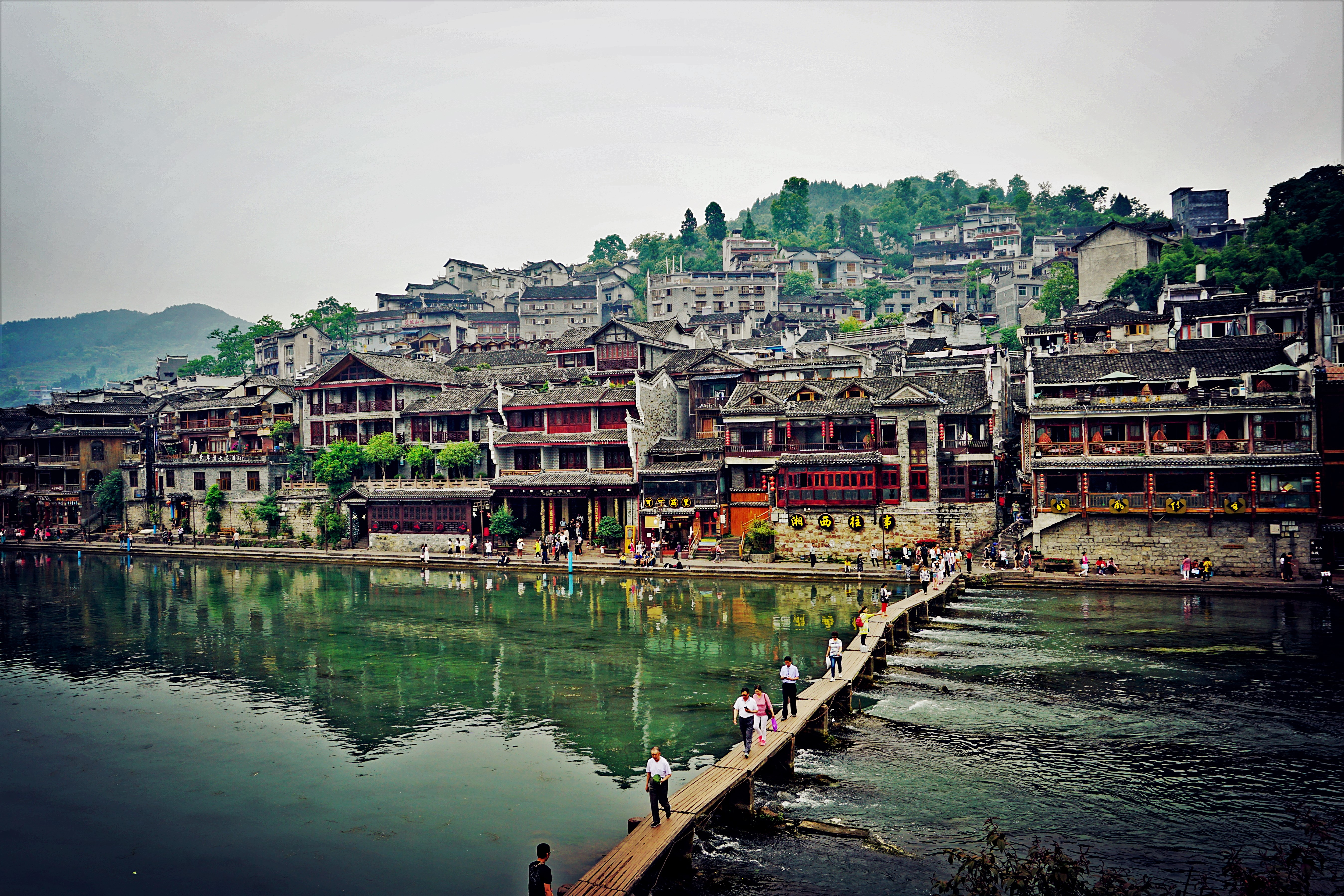 凤凰古城,位于湖南省湘西土家族苗族自治州的西南部,是个典型的少数民族聚集地,有苗族、汉族、土家族等28个民族生活在这里。作为一座国家历史文化名城,凤凰的风景将自然的、人文的特质有机融合到一处,透视后的沉重感也许正是其吸引八方游人的魅力之精髓。