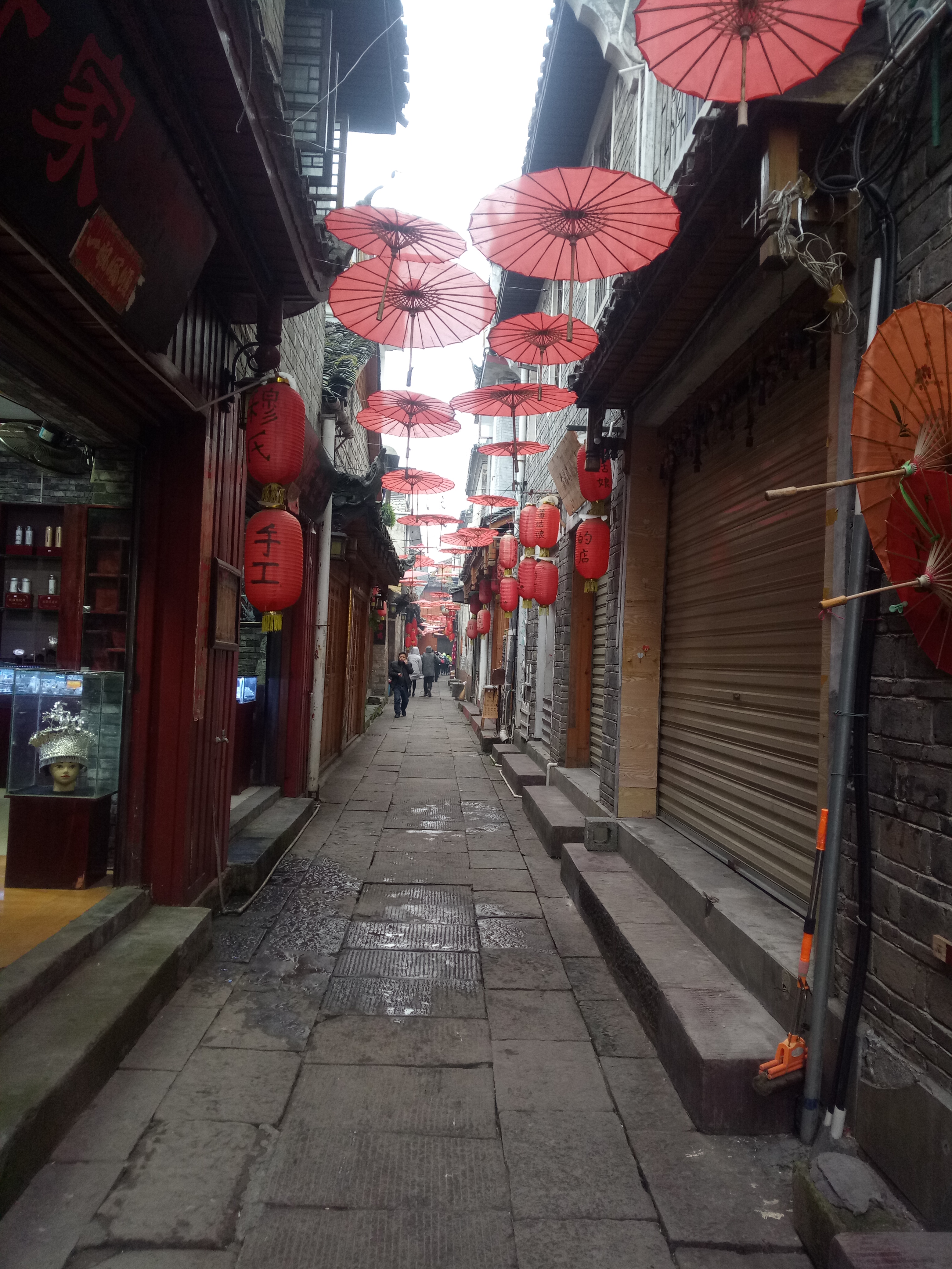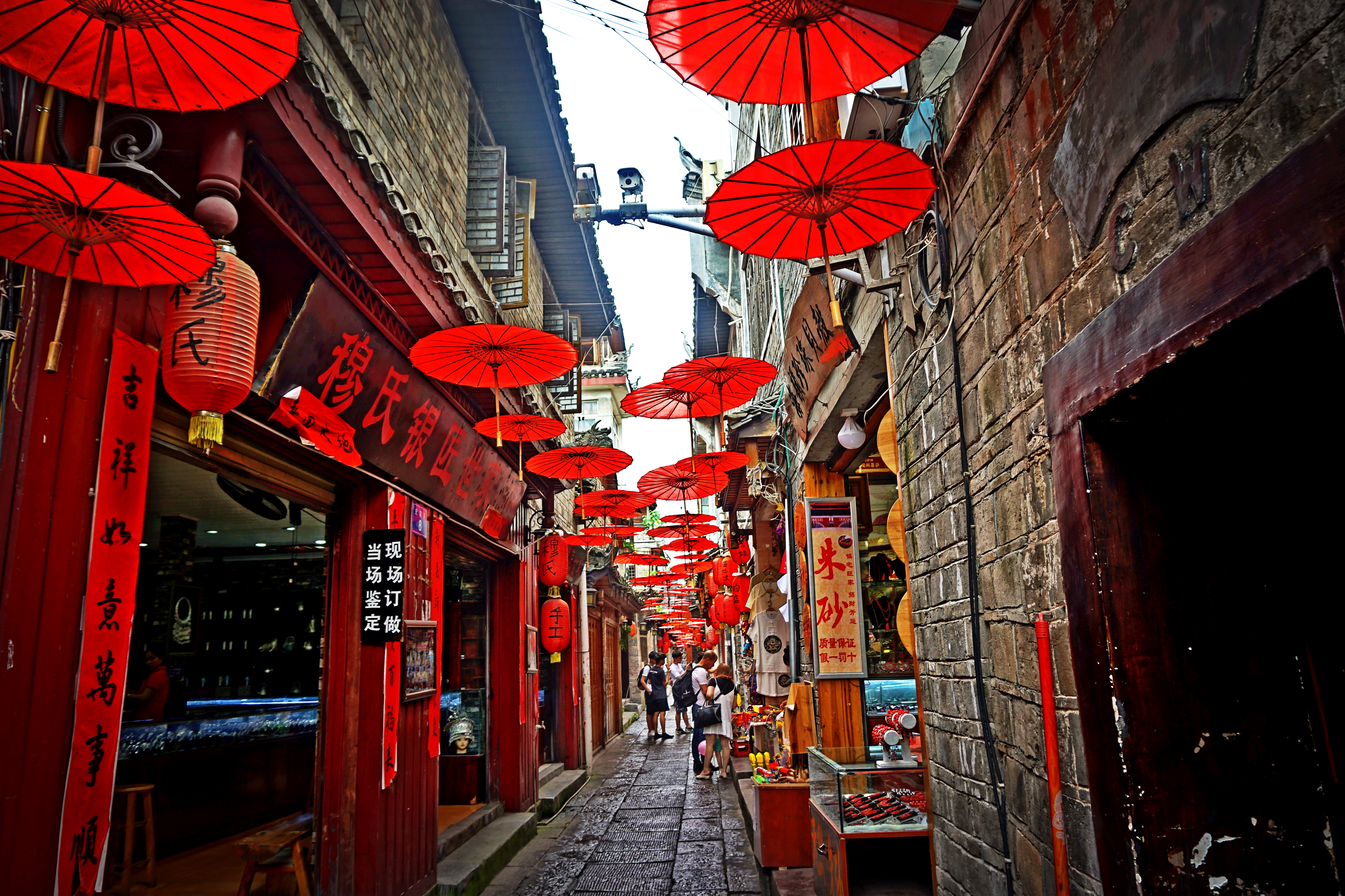 凤凰古城的小街,古老而又诗意,蜿蜒伸向远方,好像伸向了岁月长河中。一个人悠然地漫步弯弯曲曲的小巷中,偶遇一片伸展出墙的绿意,生命的勃发如此肆无忌惮。