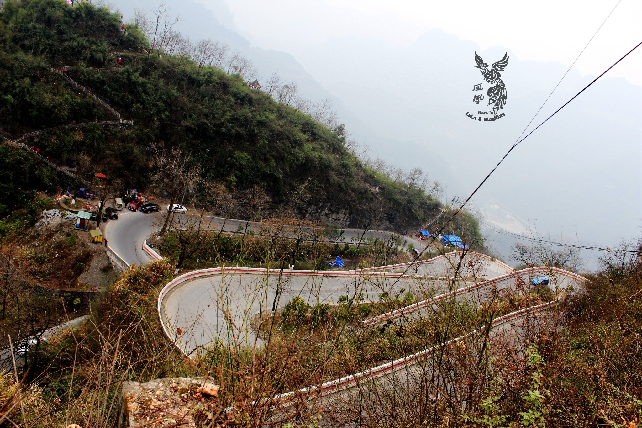 距离矮寨大桥不远,便是公路奇观——矮寨盘山公路,该公路为国道319干线(旧称湘川公路)公路奇观。自下而上经13处弯道始达坡顶。山势陡峭险峻,近坡顶处有一公路天桥,全国罕见。这一段公路长约6公里,却修筑于水平距离不足100米,垂直高度440米,坡度为70-90度的大小斜坡上。