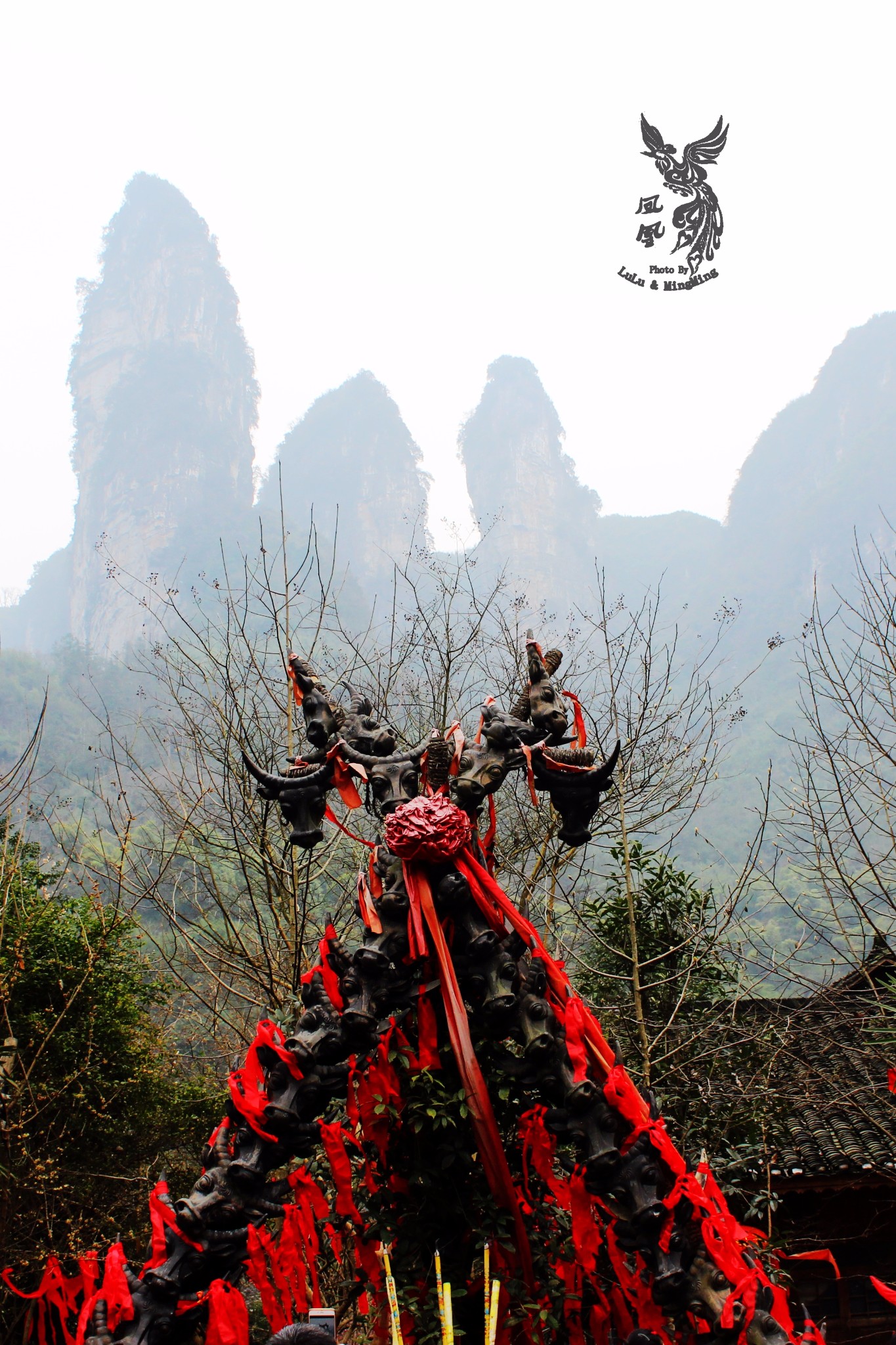 苗寨祭祀的地方,后面的三座山峰像不像三炷香火?