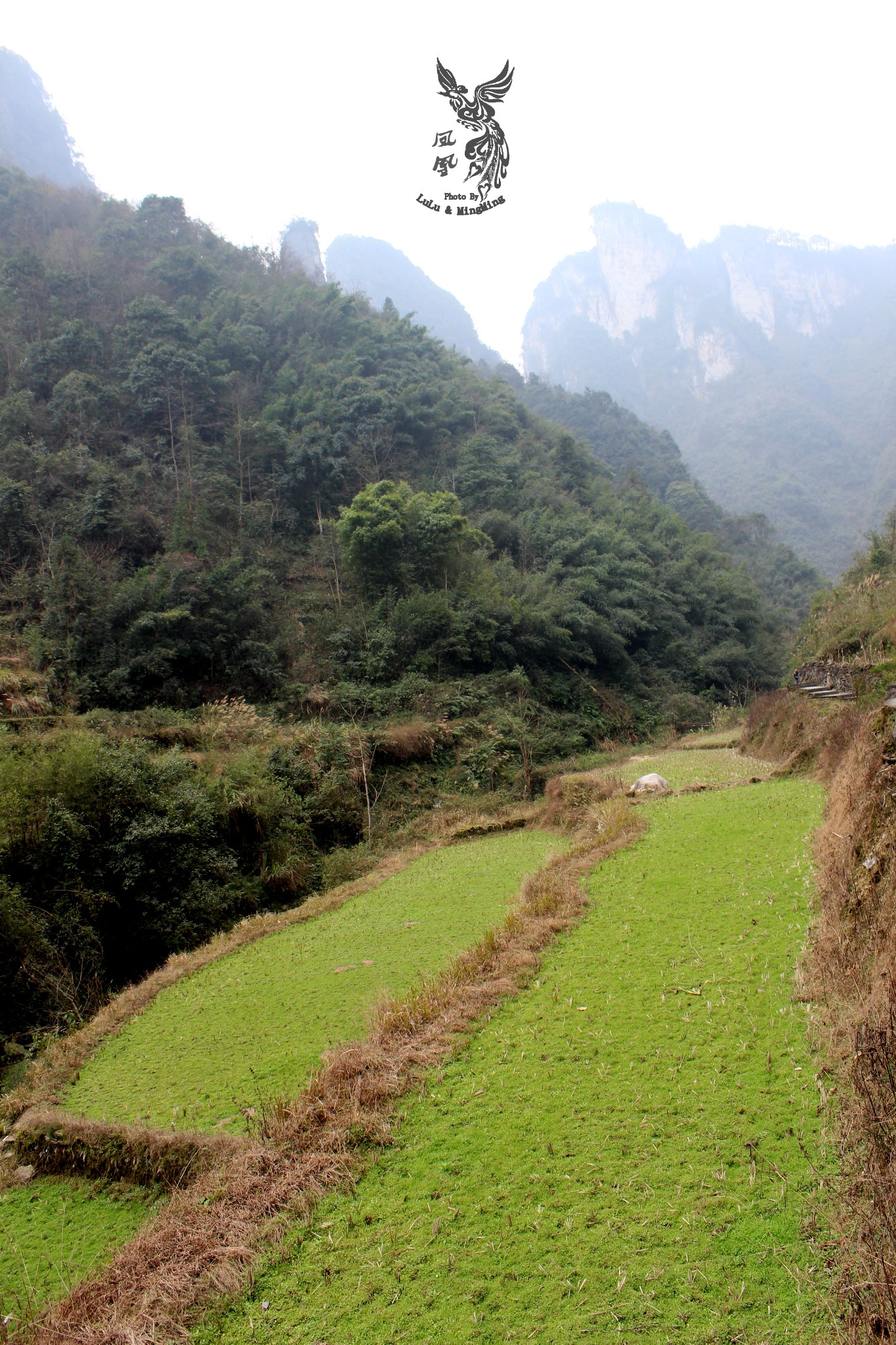 从苗家屋后向先走,是峡谷风光,近处还随处可见苗家的菜地。