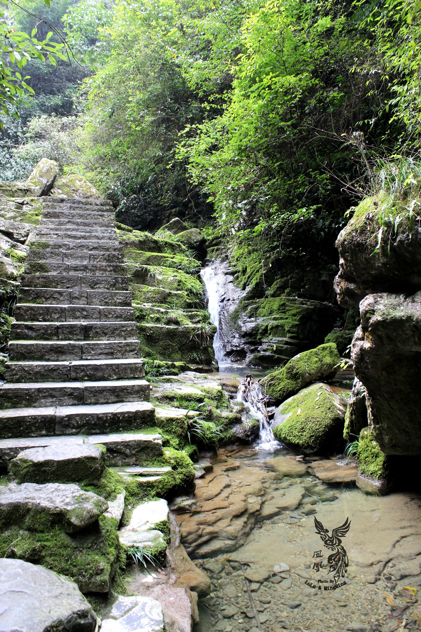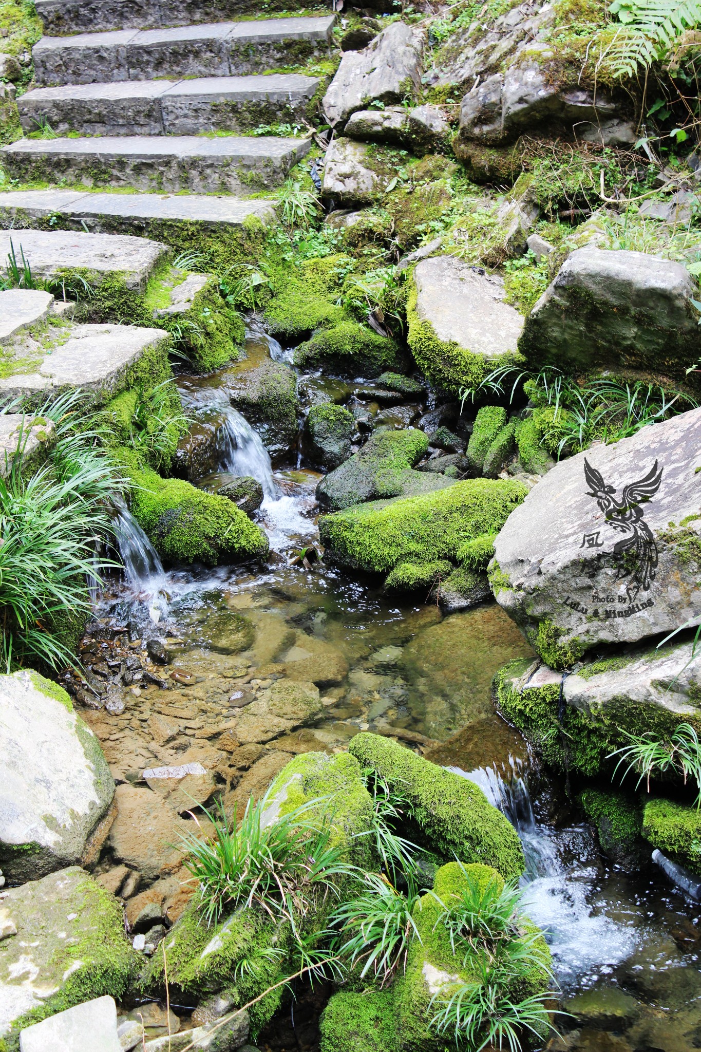深入到峡谷深处,一直伴随着潺潺溪水,越往上走,水生越大,清澈见底,周围石头上布满青苔。