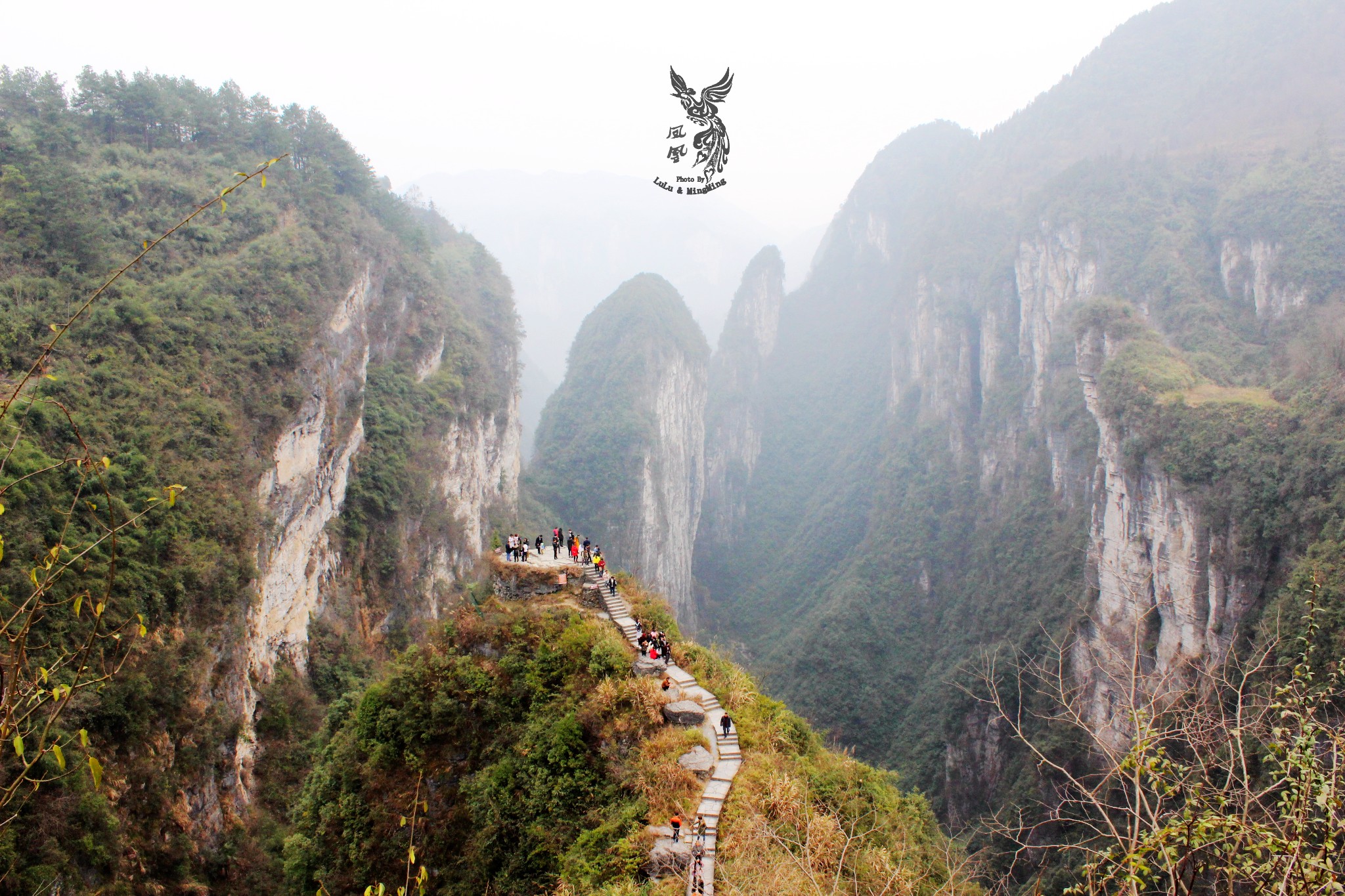 四周都是陡峭的山壁,感觉一直在两山夹缝中爬行。台阶由平缓变为陡峭,爬到山上,台阶已经窄的只容一个人通过,不敢向下看。